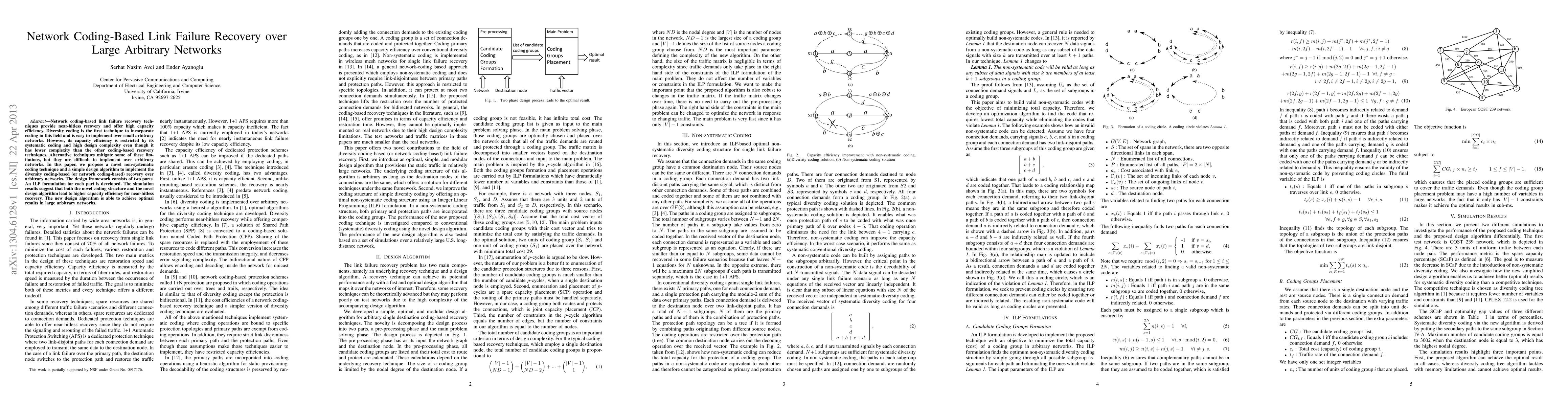 This paper proposes a novel non-systematic coding technique and a simple design algorithm for efficient network coding-based link failure recovery over arbitrary networks, achieving higher capacity efficiency and optimal results in large networks. The new approach addresses limitations of existing diversity coding methods.