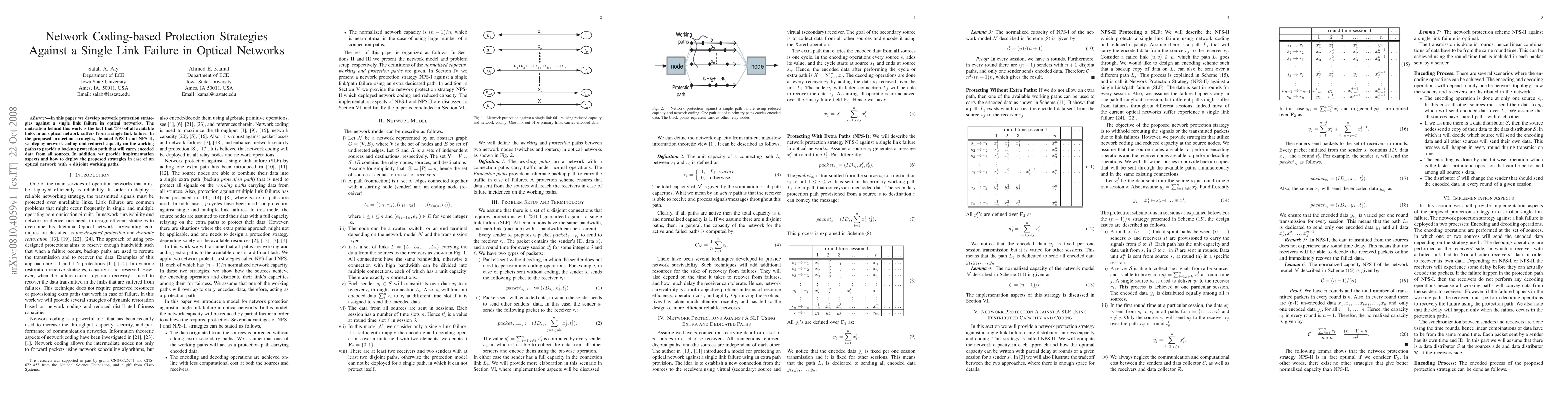 This paper proposes network protection strategies, NPS-I and NPS-II, using network coding to safeguard against single link failures in optical networks. These strategies utilize reduced capacity on working paths to create backup protection paths that carry encoded data from all sources, addressing the prevalent issue of link failures in optical networks.