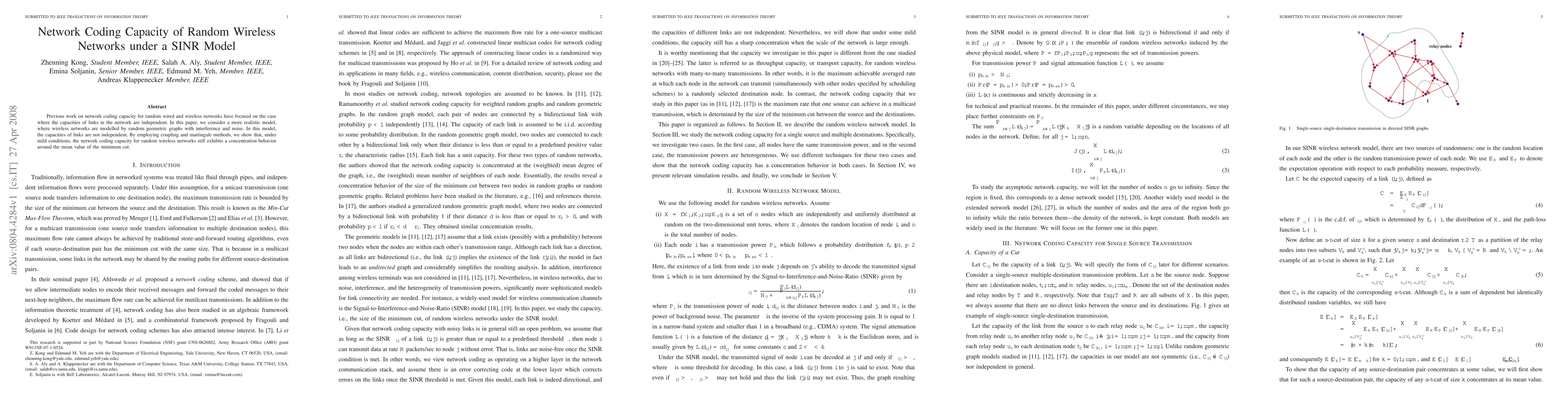 This paper investigates the network coding capacity in random wireless networks modeled by random geometric graphs, accounting for interference and noise. Using coupling and martingale methods, it demonstrates that the network coding capacity exhibits concentration around the mean value of the minimum cut under mild conditions.