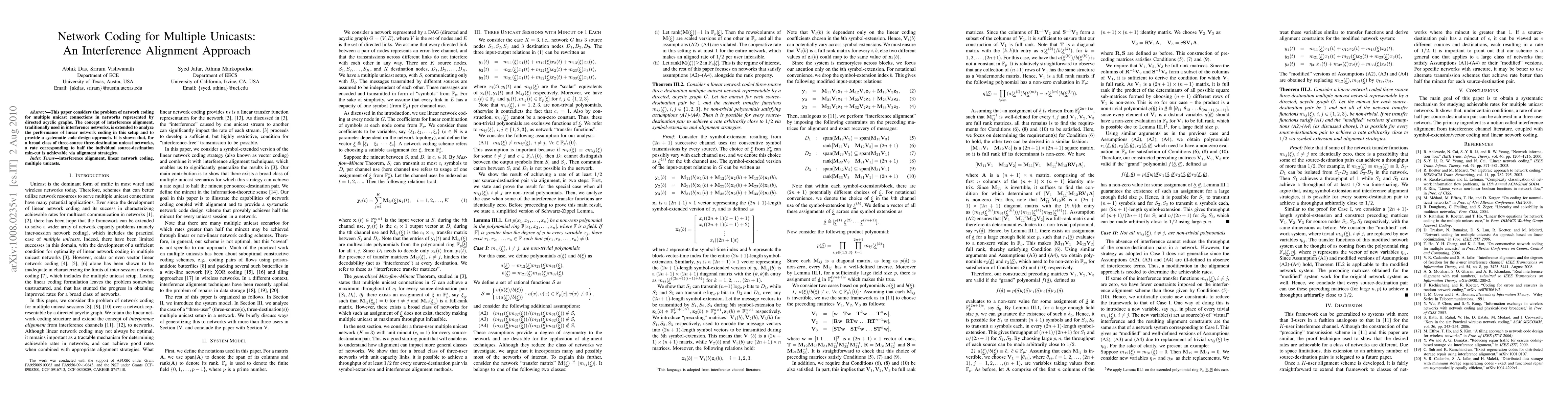 This paper proposes an interference alignment approach for network coding in multiple unicast connections, extending its use from interference networks to directed acyclic graphs. It demonstrates that for specific three-source, three-destination networks, an achievable rate of half the individual source-destination min-cut can be attained through alignment strategies.