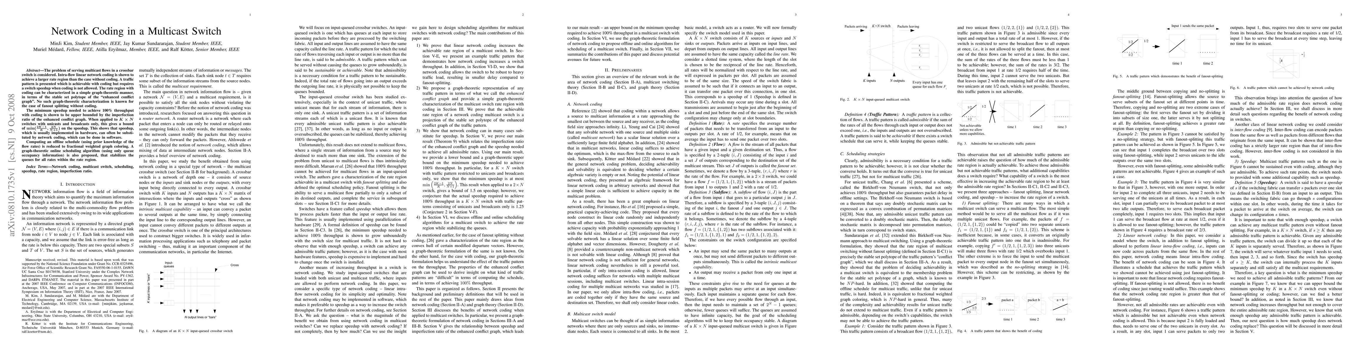 Researchers show that network coding can increase the rate region for serving multicast flows in a crossbar switch, reducing the need for speedup in hardware, while also proposing graph-theoretic algorithms for scheduling and online adaptation.