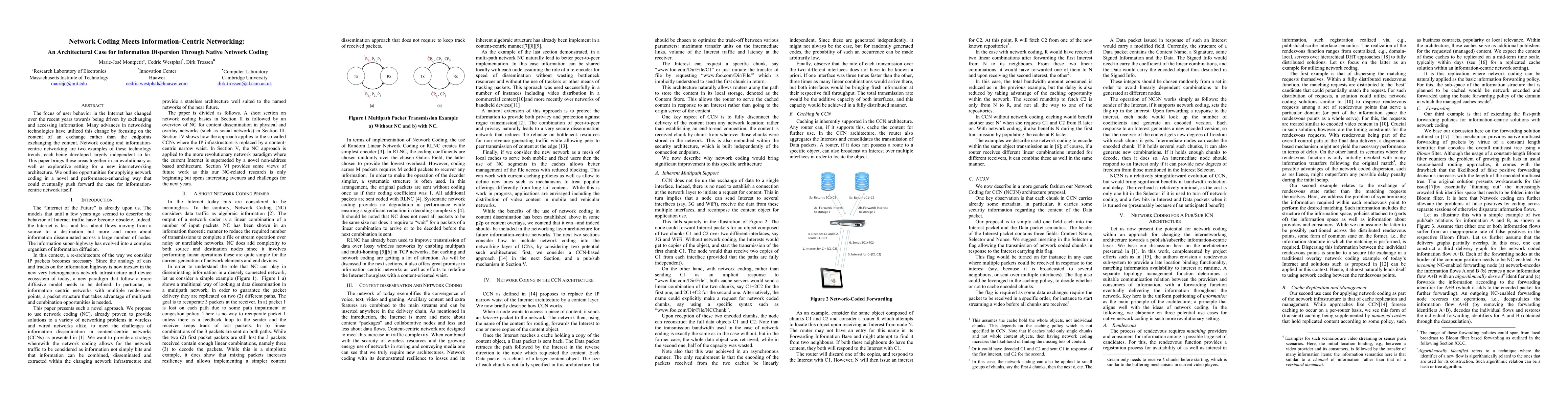 This paper explores the integration of network coding with information-centric networking to enhance internetworking architecture, proposing innovative applications of network coding to improve performance and advance the adoption of information-centric networks.