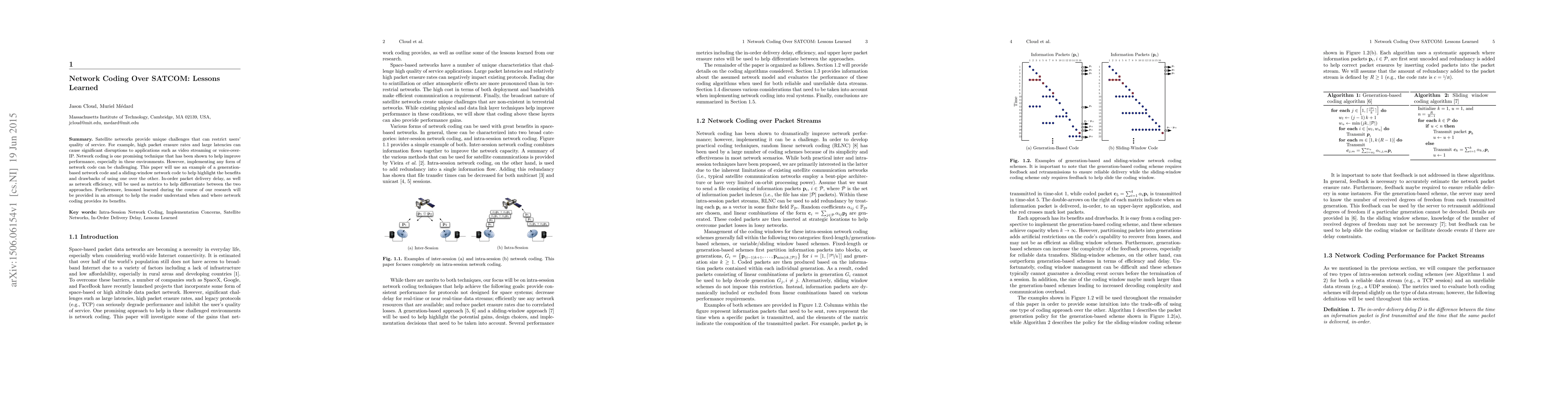 Satellite networks provide unique challenges that can restrict users' quality of service. For example, high packet erasure rates and large latencies can cause significant disruptions to applications such as video streaming or voice-over-IP. Network coding is one promising technique that has been shown to help improve performance, especially in these environments. However, implementing any form of network code can be challenging. This paper will use an example of a generation-based network code and a sliding-window network code to help highlight the benefits and drawbacks of using one over the other. In-order packet delivery delay, as well as network efficiency, will be used as metrics to help differentiate between the two approaches. Furthermore, lessoned learned during the course of our research will be provided in an attempt to help the reader understand when and where network coding provides its benefits.
