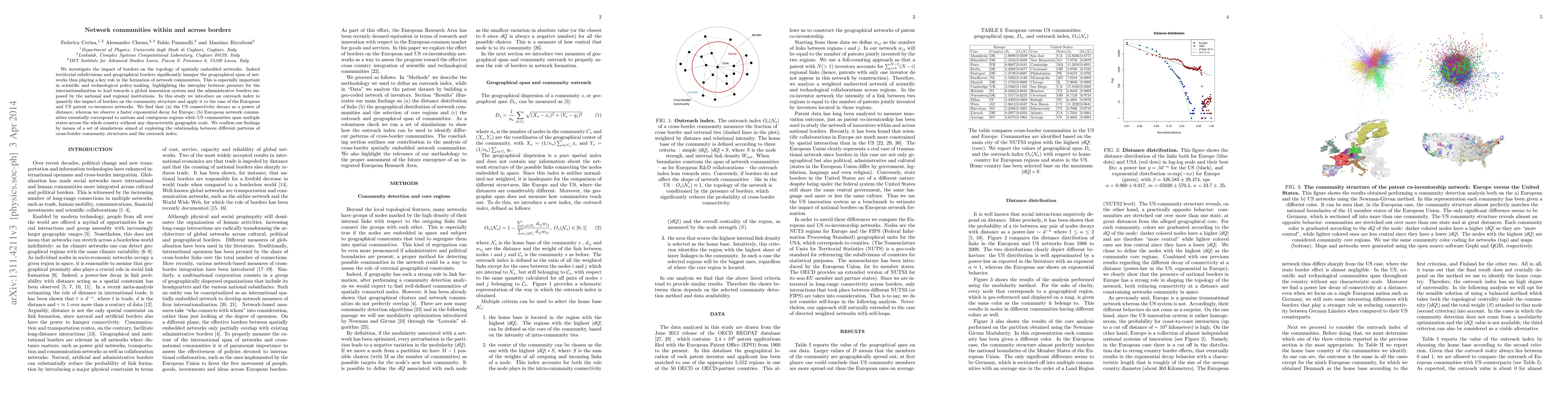 Research finds that borders significantly impact network communities, particularly in Europe where communities resemble nations and contiguous regions, while the US patent co-inventors network shows no geographic scale within states.
