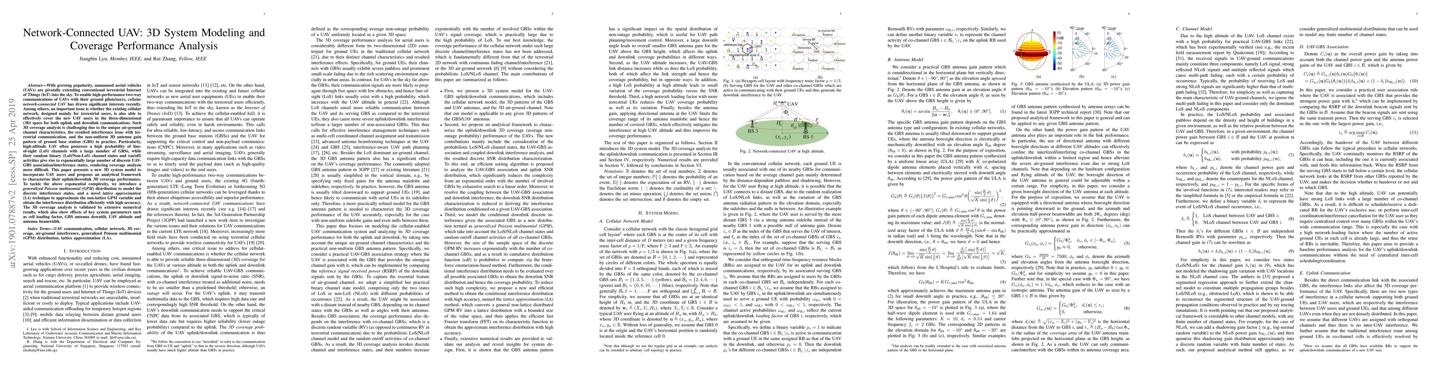This paper develops a 3D system model for network-connected UAVs and proposes an analytical framework to evaluate their uplink/downlink coverage performance. It introduces a generalized Poisson multinomial distribution and a lattice approximation technique to manage the complexity of interference states, validated by numerical results showing the impact of parameters like cell loading factor and UAV altitude.