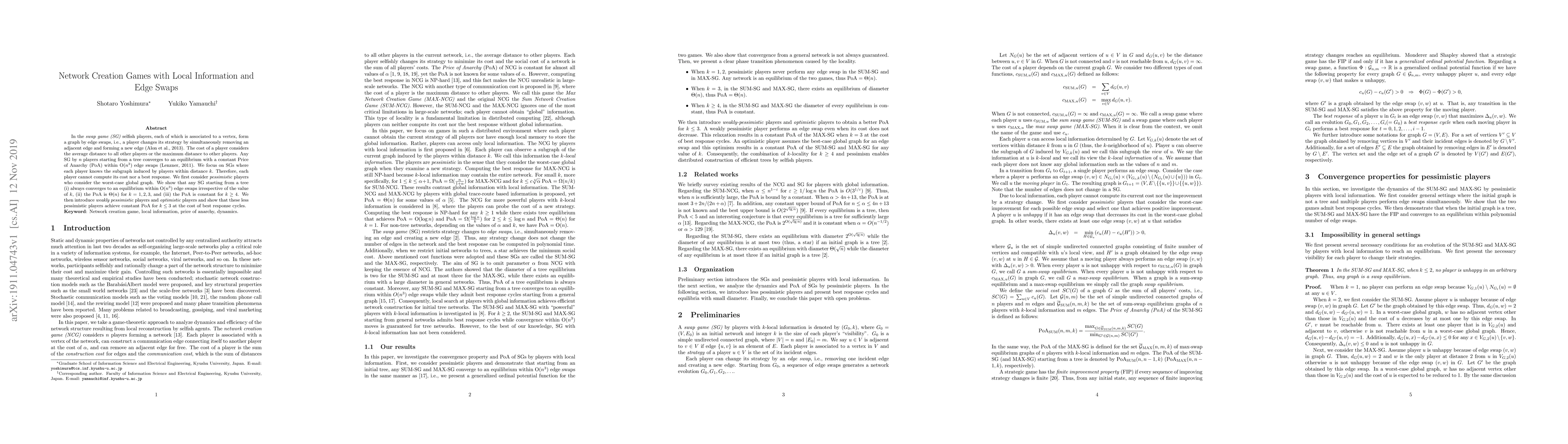 Research paper explores network creation games with local information and edge swaps, finding that players with limited knowledge can still converge to equilibria within a constant number of edge swaps, improving upon previous results.