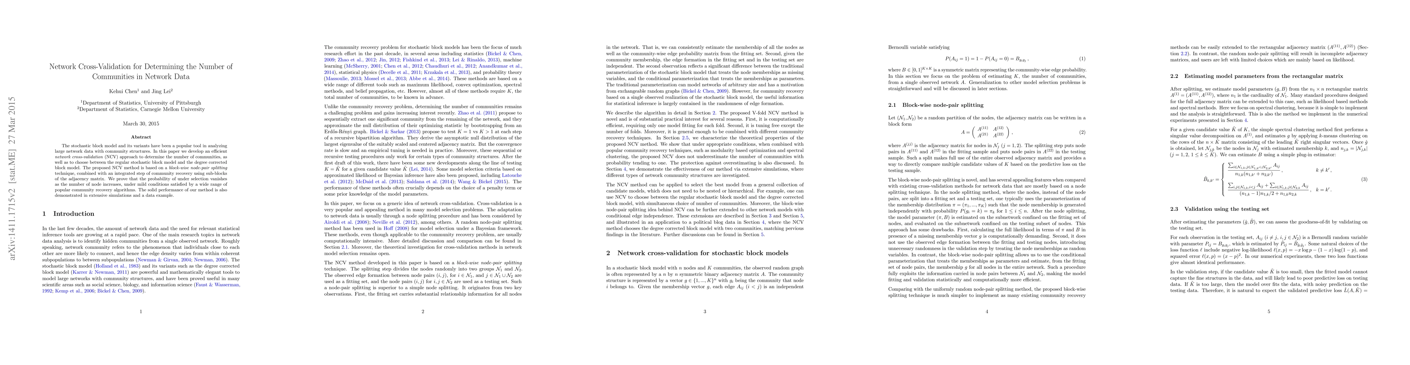 This paper introduces a network cross-validation (NCV) method to determine the optimal number of communities in network data using the stochastic block model. The proposed NCV technique, based on block-wise node-pair splitting and community recovery, shows strong performance in simulations and real data examples.