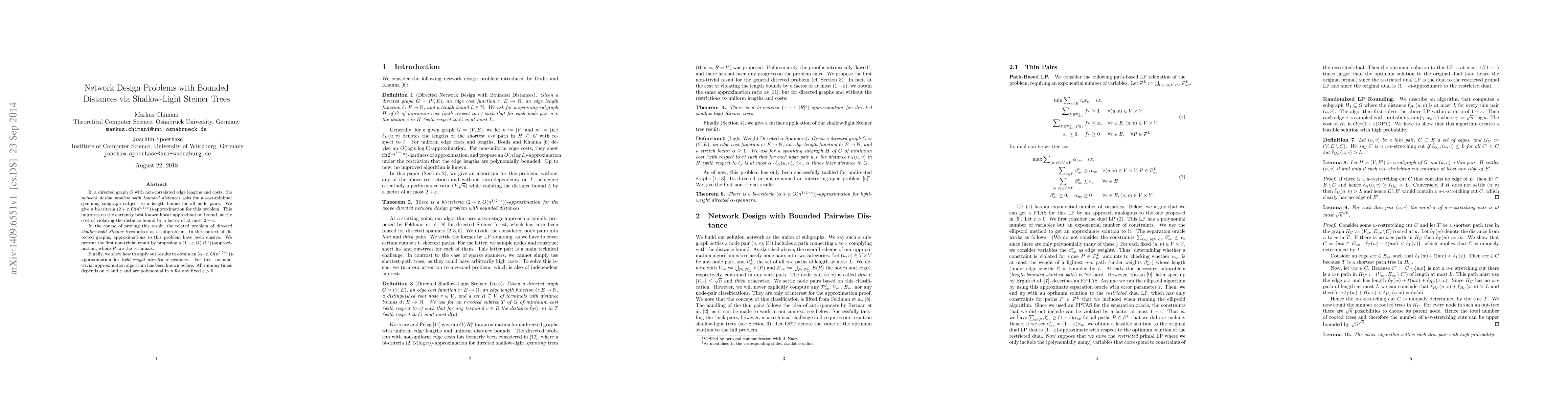 In a directed graph $G$ with non-correlated edge lengths and costs, the \emph{network design problem with bounded distances} asks for a cost-minimal spanning subgraph subject to a length bound for all node pairs. We give a bi-criteria $(2+\varepsilon,O(n^{0.5+\varepsilon}))$-approximation for this problem. This improves on the currently best known linear approximation bound, at the cost of violating the distance bound by a factor of at most~$2+\varepsilon$. In the course of proving this result, the related problem of \emph{directed shallow-light Steiner trees} arises as a subproblem. In the context of directed graphs, approximations to this problem have been elusive. We present the first non-trivial result by proposing a $(1+\varepsilon,O(|R|^{\varepsilon}))$-ap\-proxi\-ma\-tion, where $R$ are the terminals. Finally, we show how to apply our results to obtain an $(\alpha+\varepsilon,O(n^{0.5+\varepsilon}))$-approximation for \emph{light-weight directed $\alpha$-spanners}. For this, no non-trivial approximation algorithm has been known before. All running times depends on $n$ and $\varepsilon$ and are polynomial in $n$ for any fixed $\varepsilon>0$.