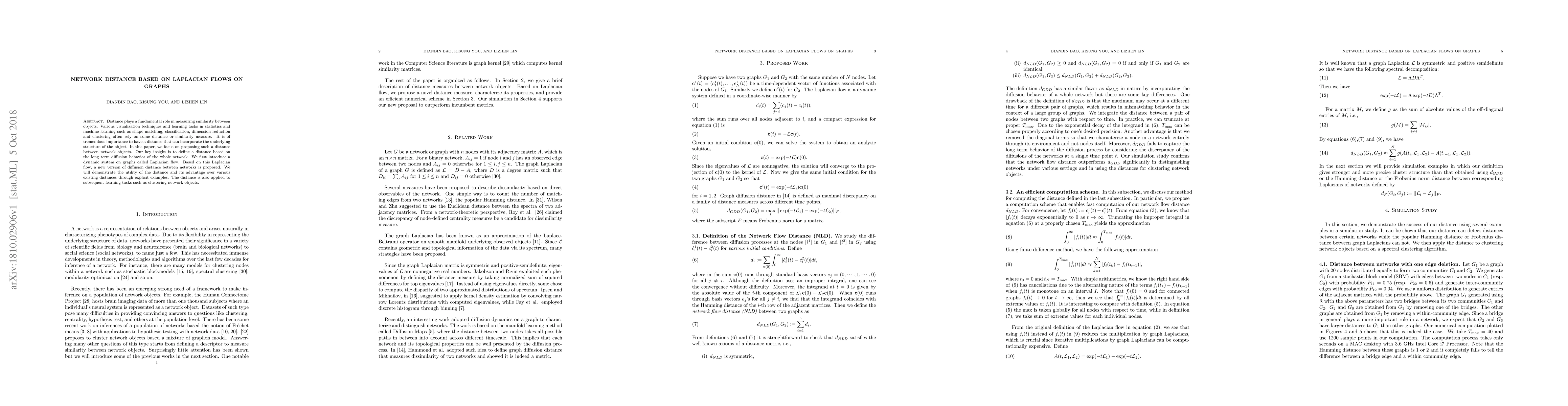 This paper proposes a novel distance measure for network objects based on the long-term diffusion behavior of the network, defined through a dynamic system called Laplacian flow. The new diffusion distance is shown to outperform existing measures in various learning tasks, including clustering.