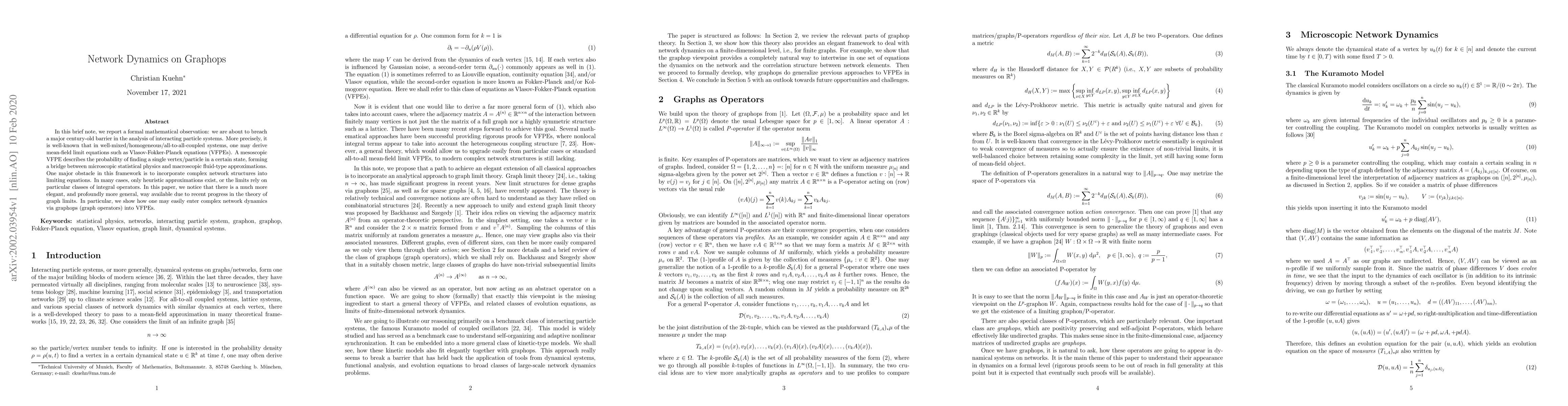 In this brief note, we report a formal mathematical observation: we are about to breach a major century-old barrier in the analysis of interacting particle systems. More precisely, it is well-known that in well-mixed/homogeneous/all-to-all-coupled systems, one may derive mean-field limit equations such as Vlasov-Fokker-Planck equations (VFPEs). A mesoscopic VFPE describes the probability of finding a single vertex/particle in a certain state, forming a bridge between microscopic statistical physics and macroscopic fluid-type approximations. One major obstacle in this framework is to incorporate complex network structures into limiting equations. In many cases, only heuristic approximations exist, or the limits rely on particular classes of integral operators. In this paper, we notice that there is a much more elegant, and profoundly more general, way available due to recent progress in the theory of graph limits. In particular, we show how one may easily enter complex network dynamics via graphops (graph operators) into VFPEs.