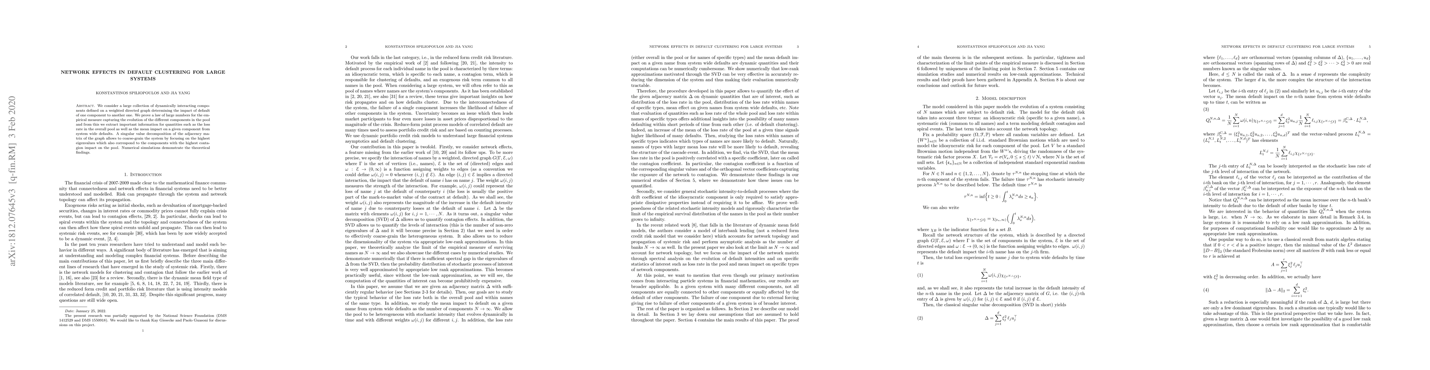 We consider a large collection of dynamically interacting components defined on a weighted directed graph determining the impact of default of one component to another one. We prove a law of large numbers for the empirical measure capturing the evolution of the different components in the pool and from this we extract important information for quantities such as the loss rate in the overall pool as well as the mean impact on a given component from system wide defaults. A singular value decomposition of the adjacency matrix of the graph allows to coarse-grain the system by focusing on the highest eigenvalues which also correspond to the components with the highest contagion impact on the pool. Numerical simulations demonstrate the theoretical findings.