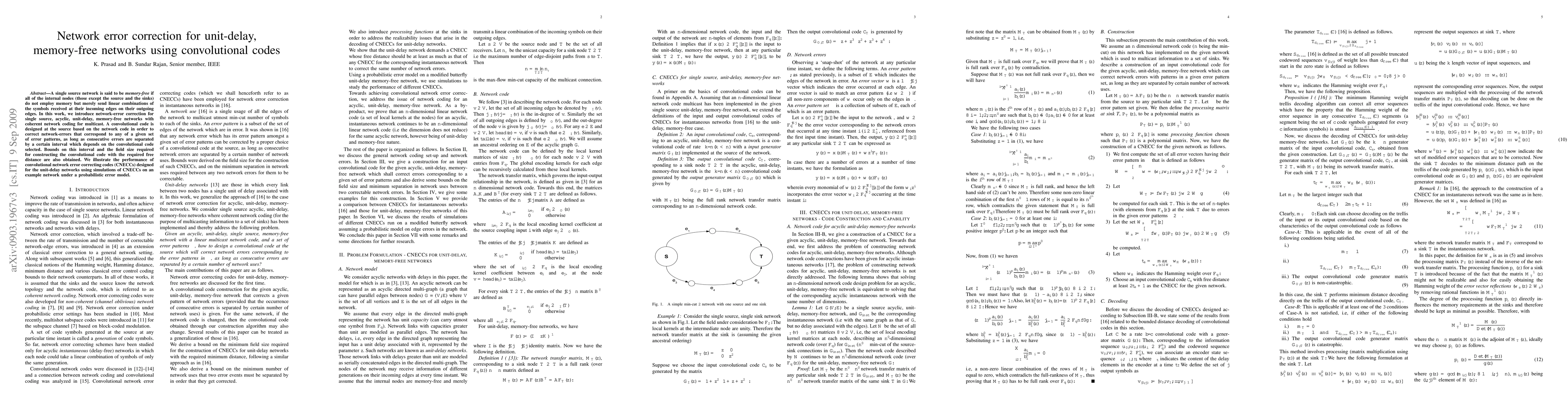 A single source network is said to be memory-free if all of the internal nodes (those except the source and the sinks) do not employ memory but merely send linear combinations of the symbols received at their incoming edges on their outgoing edges. In this work, we introduce network-error correction for single source, acyclic, unit-delay, memory-free networks with coherent network coding for multicast. A convolutional code is designed at the source based on the network code in order to correct network-errors that correspond to any of a given set of error patterns, as long as consecutive errors are separated by a certain interval which depends on the convolutional code selected. Bounds on this interval and the field size required for constructing the convolutional code with the required free distance are also obtained. We illustrate the performance of convolutional network error correcting codes (CNECCs) designed for the unit-delay networks using simulations of CNECCs on an example network under a probabilistic error model.