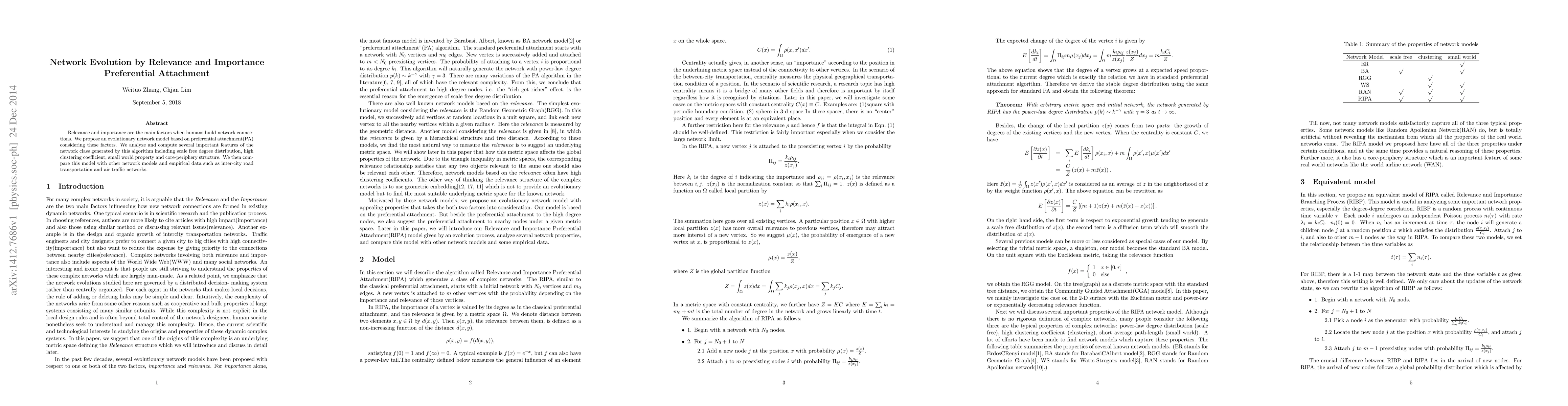 Researchers propose a network evolution model based on relevance and importance preferential attachment, generating networks with scale-free degree distributions and high clustering coefficients, similar to real-world air traffic and inter-city road networks.