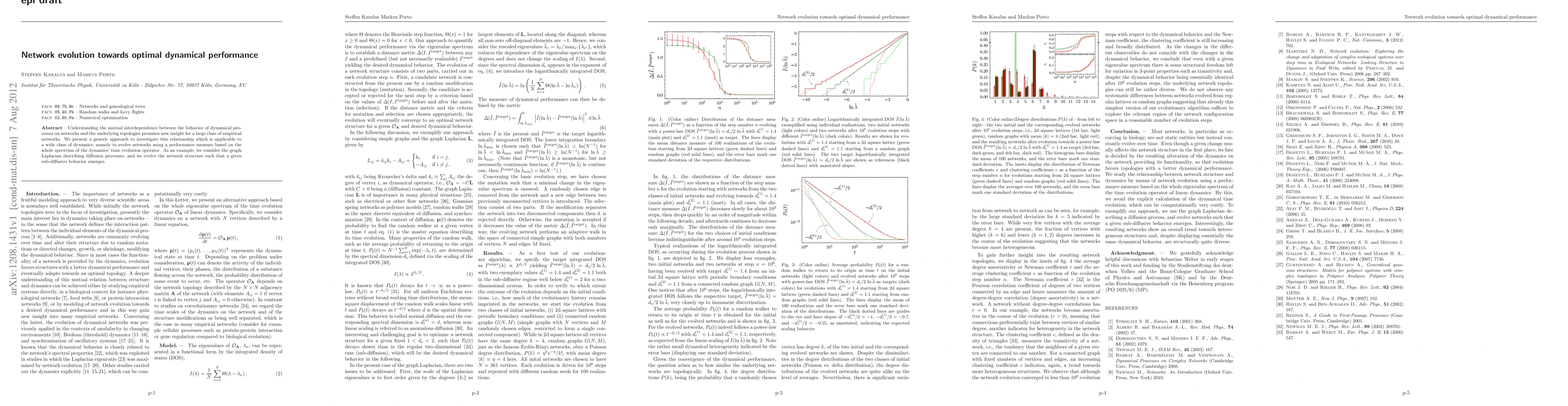 This research introduces a method to evolve network structures based on desired dynamical performance, using the graph Laplacian for diffusion processes as an example. The approach aims to achieve a specific sub-diffusive behavior, offering insights into the interdependence between network topology and dynamical processes.