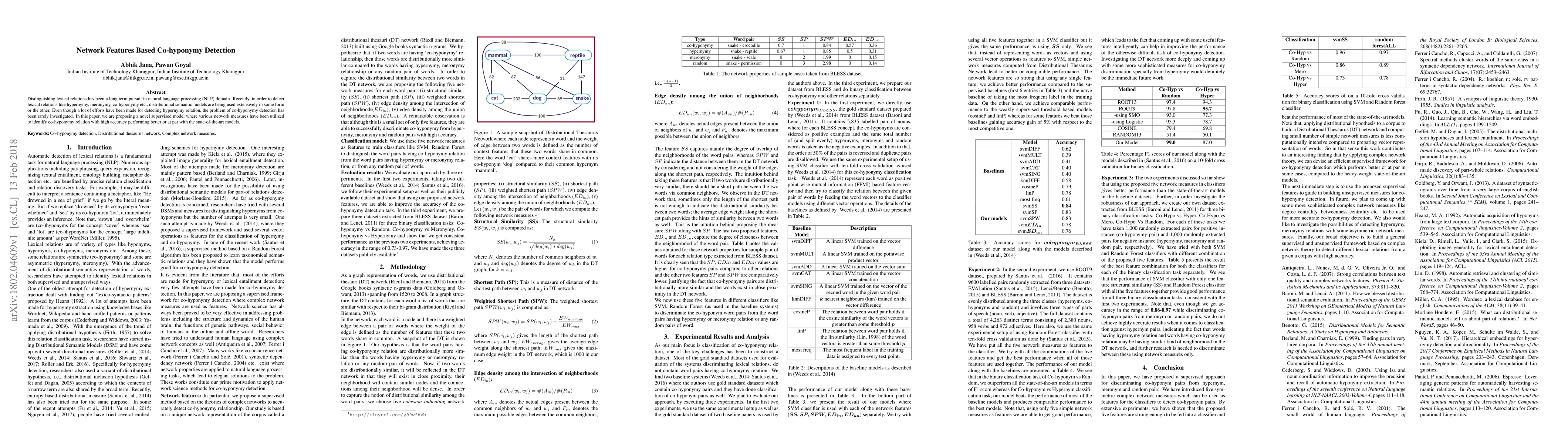 This paper proposes a supervised model using network features to detect co-hyponymy relations, achieving high accuracy and outperforming or matching state-of-the-art models in lexical relation identification.