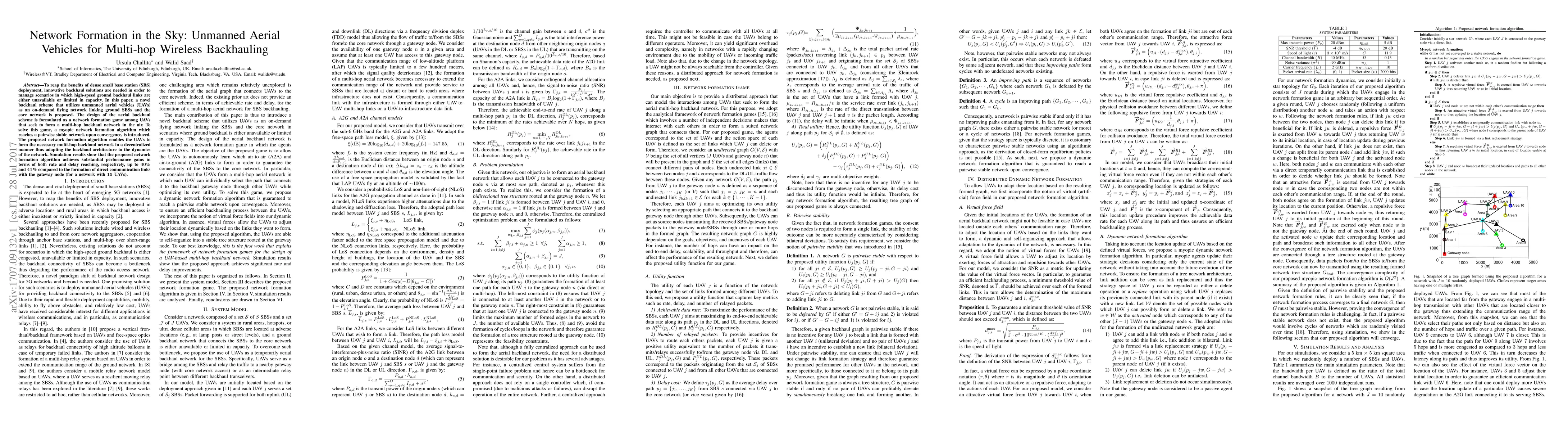 To reap the benefits of dense small base station (SBS) deployment, innovative backhaul solutions are needed in order to manage scenarios in which high-speed ground backhaul links are either unavailable or limited in capacity. In this paper, a novel backhaul scheme that utilizes unmanned aerial vehicles (UAVs) as an on-demand flying network linking ground SBSs and the core network is proposed. The design of the aerial backhaul scheme is formulated as a network formation game among UAVs that seek to form a multi-hop backhaul network in the air. To solve this game, a myopic network formation algorithm which reaches a pairwise stable network upon convergence, is introduced. The proposed network formation algorithm enables the UAVs to form the necessary multi-hop backhaul network in a decentralized manner thus adapting the backhaul architecture to the dynamics of the network. Simulation results show that the proposed network formation algorithm achieves substantial performance gains in terms of both rate and delay reaching, respectively, up to 40% and 41% compared to the formation of direct communication links with the gateway node (for a network with 15 UAVs).
