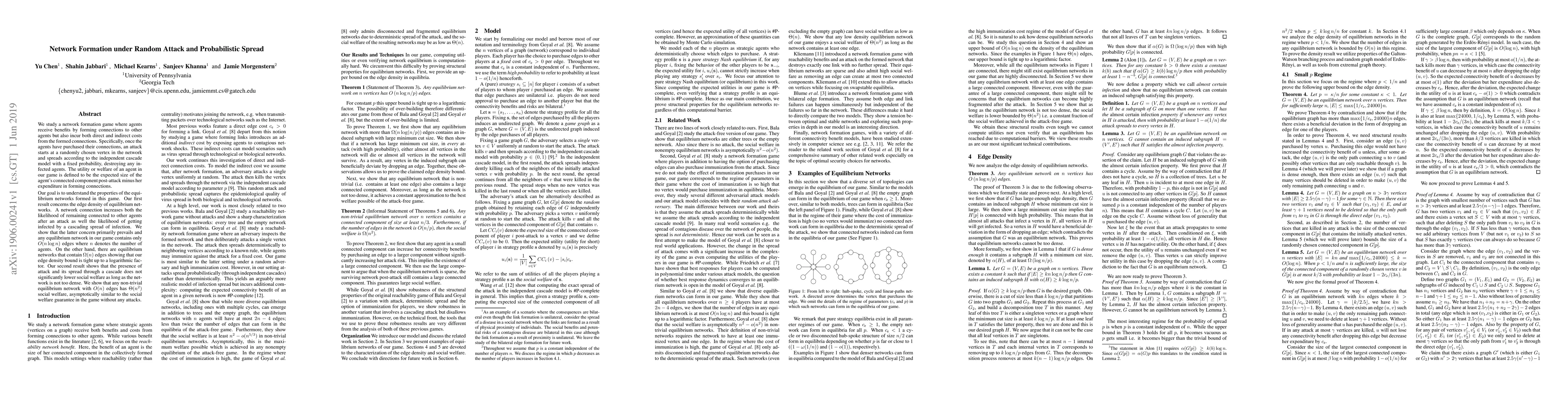 We study a network formation game where agents receive benefits by forming connections to other agents but also incur both direct and indirect costs from the formed connections. Specifically, once the agents have purchased their connections, an attack starts at a randomly chosen vertex in the network and spreads according to the independent cascade model with a fixed probability, destroying any infected agents. The utility or welfare of an agent in our game is defined to be the expected size of the agent's connected component post-attack minus her expenditure in forming connections. Our goal is to understand the properties of the equilibrium networks formed in this game. Our first result concerns the edge density of equilibrium networks. A network connection increases both the likelihood of remaining connected to other agents after an attack as well the likelihood of getting infected by a cascading spread of infection. We show that the latter concern primarily prevails and any equilibrium network in our game contains only $O(n\log n)$ edges where $n$ denotes the number of agents. On the other hand, there are equilibrium networks that contain $\Omega(n)$ edges showing that our edge density bound is tight up to a logarithmic factor. Our second result shows that the presence of attack and its spread through a cascade does not significantly lower social welfare as long as the network is not too dense. We show that any non-trivial equilibrium network with $O(n)$ edges has $\Theta(n^2)$ social welfare, asymptotically similar to the social welfare guarantee in the game without any attacks.