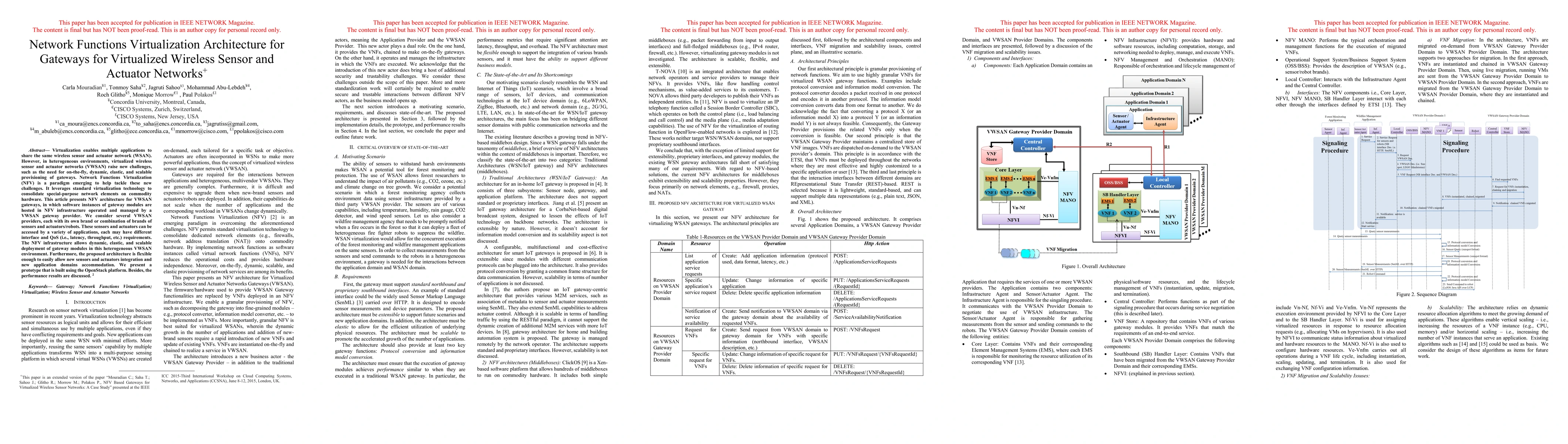 This paper proposes an NFV architecture for gateways in virtualized wireless sensor and actuator networks (VWSAN), enabling dynamic, elastic, and scalable provisioning of gateway modules on commodity hardware. The architecture supports integration of diverse sensors and actuators, and accommodates various application requirements, demonstrated through a prototype built on the OpenStack platform.