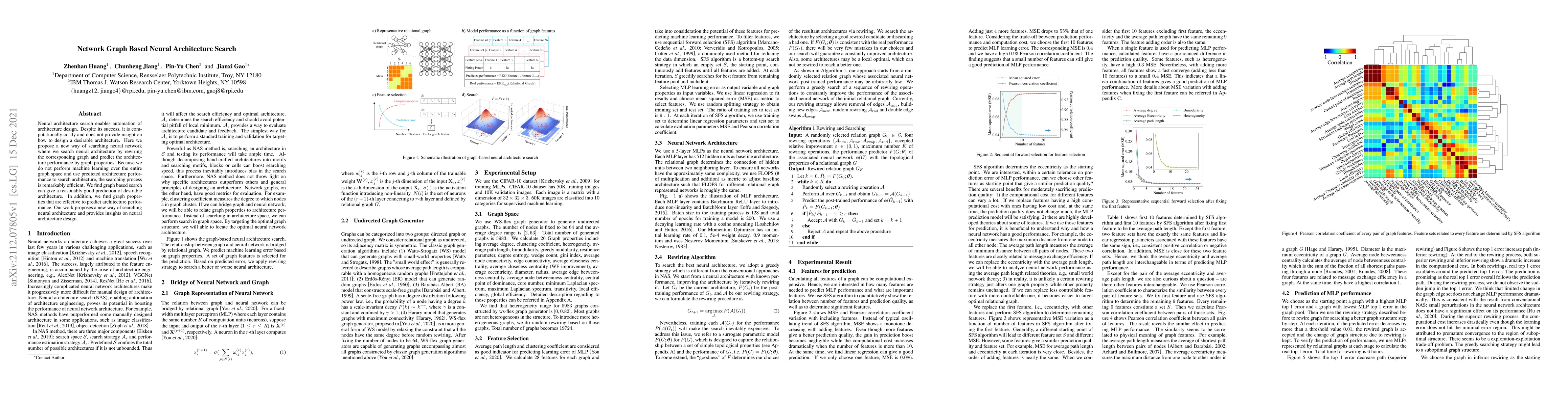 Neural architecture search enables automation of architecture design. Despite its success, it is computationally costly and does not provide an insight on how to design a desirable architecture. Here we propose a new way of searching neural network where we search neural architecture by rewiring the corresponding graph and predict the architecture performance by graph properties. Because we do not perform machine learning over the entire graph space and use predicted architecture performance to search architecture, the searching process is remarkably efficient. We find graph based search can give a reasonably good prediction of desirable architecture. In addition, we find graph properties that are effective to predict architecture performance. Our work proposes a new way of searching neural architecture and provides insights on neural architecture design.