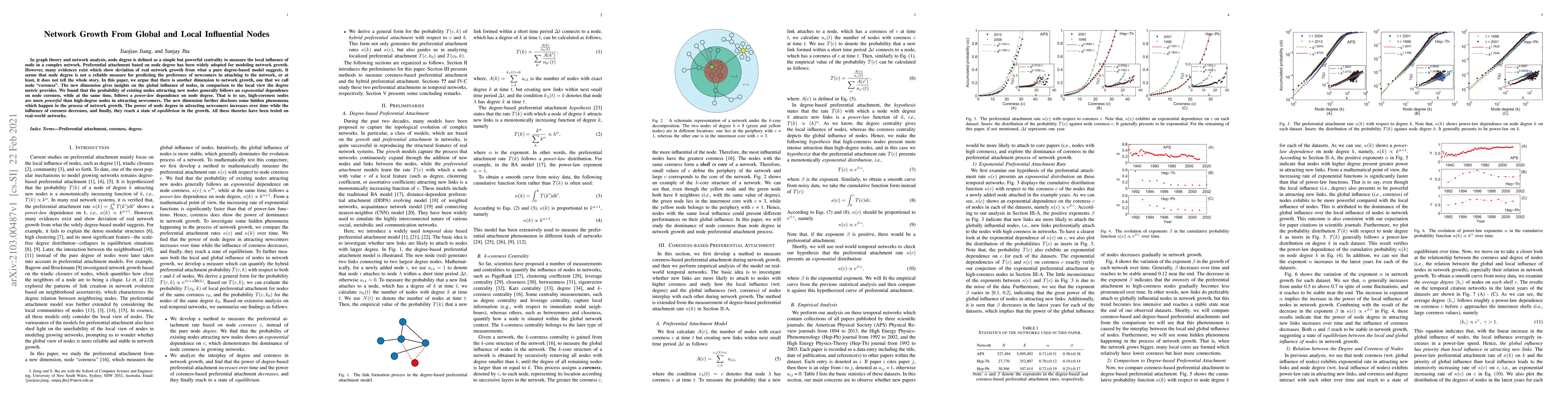 In graph theory and network analysis, node degree is defined as a simple but powerful centrality to measure the local influence of node in a complex network. Preferential attachment based on node degree has been widely adopted for modeling network growth. However, many evidences exist which show deviation of real network growth from what a pure degree-based model suggests. It seems that node degree is not a reliable measure for predicting the preference of newcomers in attaching to the network, or at least, it does not tell the whole story. In this paper, we argue that there is another dimension to network growth, one that we call node "coreness". The new dimension gives insights on the global influence of nodes, in comparison to the local view the degree metric provides. We found that the probability of existing nodes attracting new nodes generally follows an exponential dependence on node coreness, while at the same time, follows a power-law dependence on node degree. That is to say, high-coreness nodes are more powerful than high-degree nodes in attracting newcomers. The new dimension further discloses some hidden phenomena which happen in the process of network growth. The power of node degree in attracting newcomers increases over time while the influence of coreness decreases, and finally, they reach a state of equilibrium in the growth. All these theories have been tested on real-world networks.