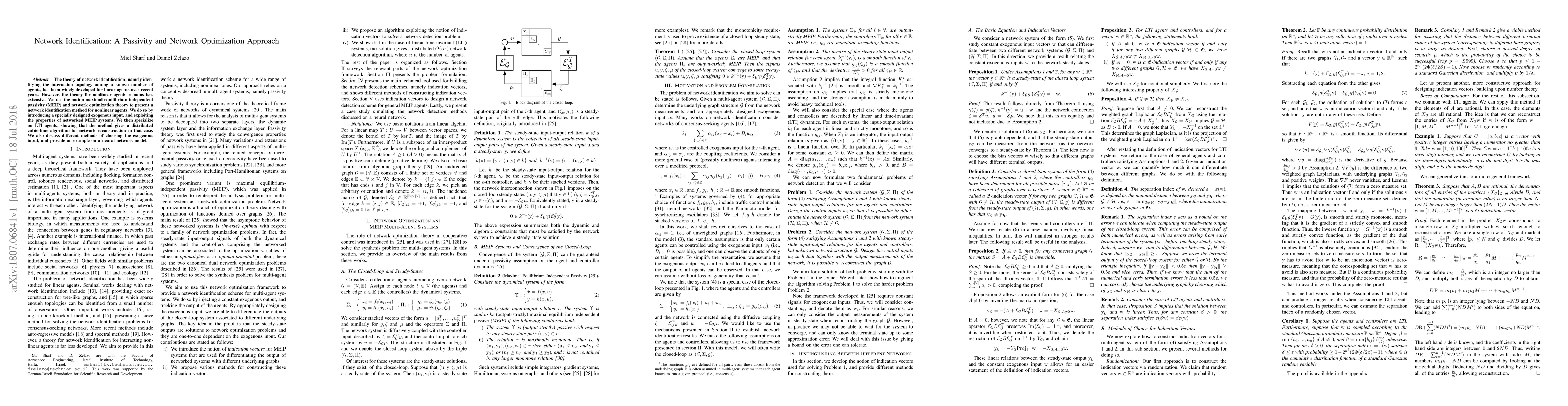 The theory of network identification, namely identifying the interaction topology among a known number of agents, has been widely developed for linear agents over recent years. However, the theory for nonlinear agents remains less extensive. We use the notion maximal equilibrium-independent passivity (MEIP) and network optimization theory to present a network identification method for nonlinear agents.We do so by introducing a specially designed exogenous input, and exploiting the properties of networked MEIP systems. We then specialize on LTI agents, showing that the method gives a distributed cubic-time algorithm for network reconstruction in that case. We also discuss different methods of choosing the exogenous input, and provide an example on a neural network model.