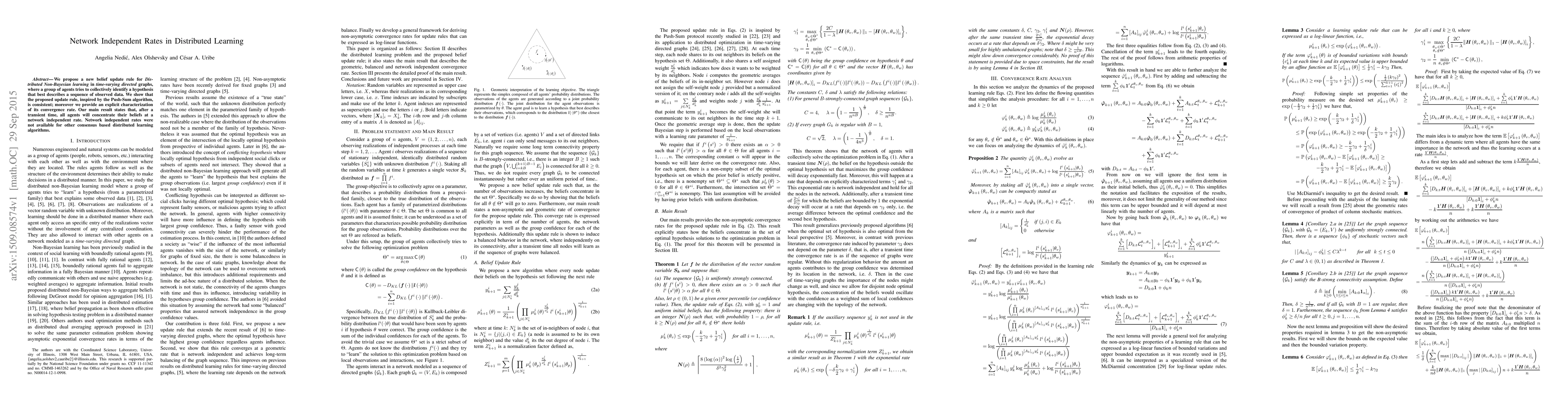 We propose a new belief update rule for Distributed Non-Bayesian learning in time-varying directed graphs, where a group of agents tries to collectively identify a hypothesis that best describes a sequence of observed data. We show that the proposed update rule, inspired by the Push-Sum algorithm, is consistent, moreover we provide an explicit characterization of its convergence rate. Our main result states that, after a transient time, all agents will concentrate their beliefs at a network independent rate. Network independent rates were not available for other consensus based distributed learning algorithms.
