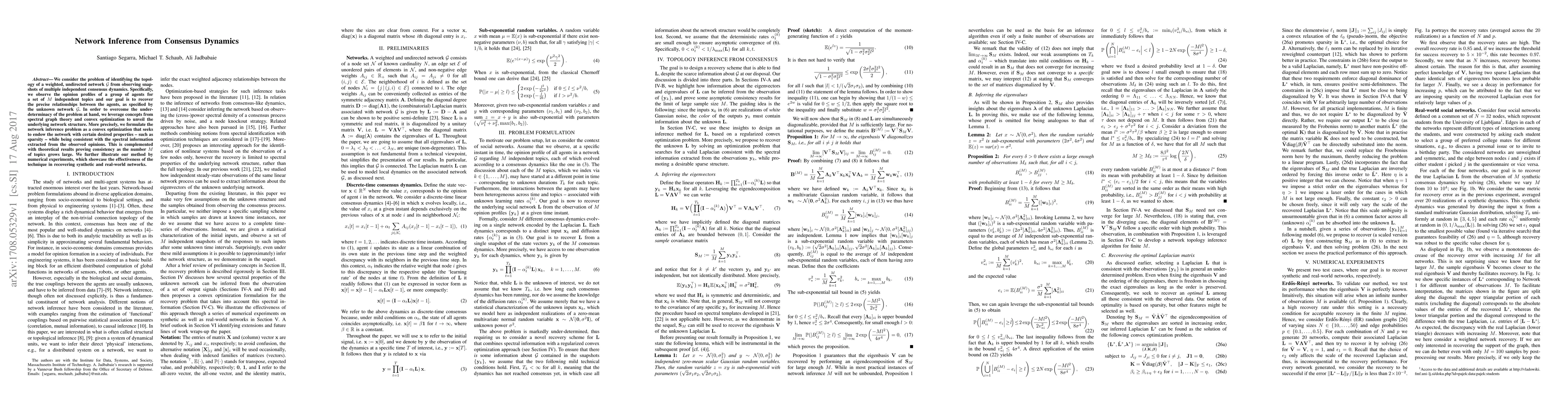 Researchers developed a method to infer network topology from observing consensus dynamics of multiple independent topics, leveraging spectral graph theory and convex optimization. The technique effectively recovers synthetic and real-world networks.