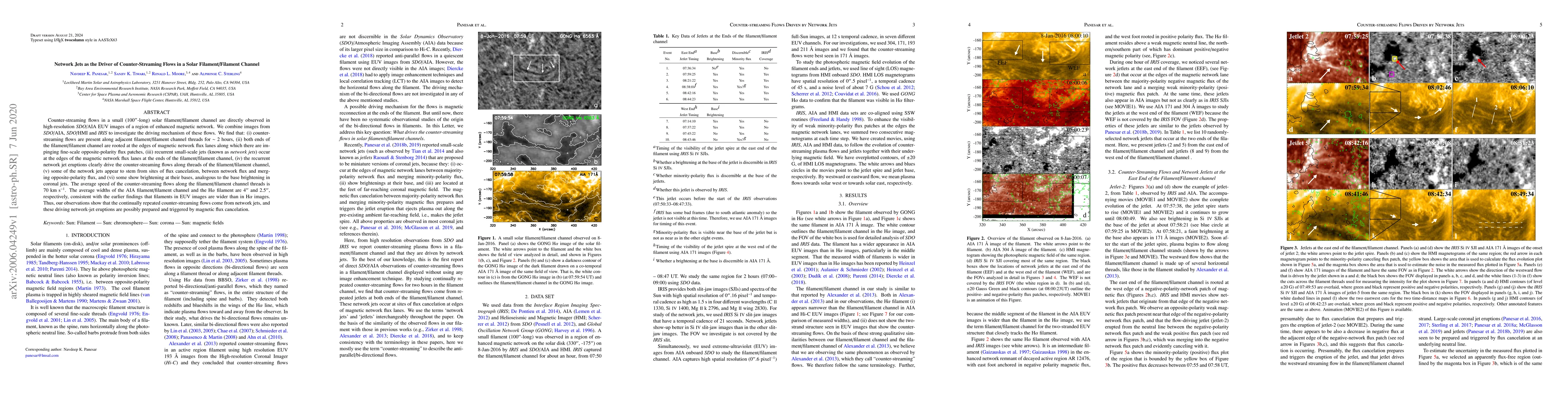 This study observes counter-streaming flows in a solar filament/filament channel driven by recurrent network jets at the magnetic network flux lanes. The network jets, possibly triggered by magnetic flux cancelation, propel the flows at an average speed of 70 km/s.