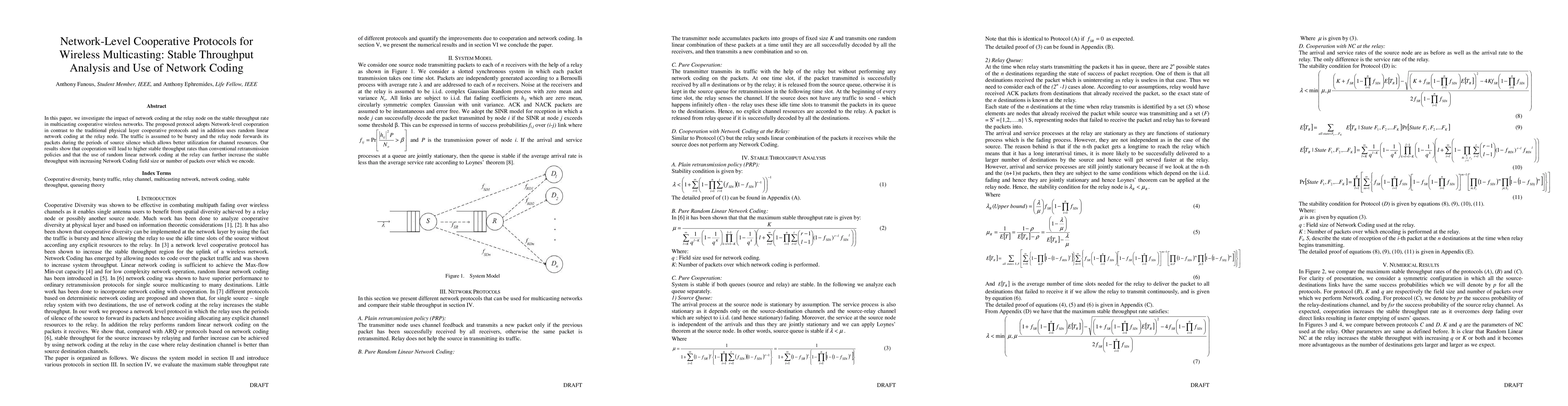 This paper explores network-level cooperative protocols for wireless multicasting, focusing on stable throughput analysis and the use of network coding. The proposed protocol enhances throughput by utilizing random linear network coding at the relay node, leading to higher rates compared to conventional retransmission policies.