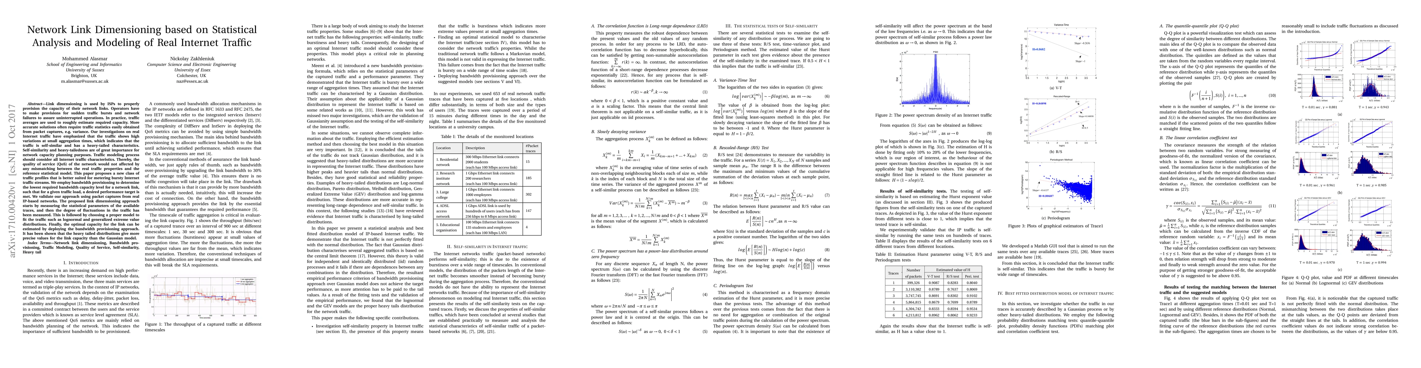 This paper proposes a new method for network link dimensioning based on statistical analysis of real Internet traffic, emphasizing the importance of self-similarity and heavy-tailed characteristics. It introduces a traffic modeling approach that better captures bursty traffic streams and validates the method using real IP network data, showing that heavy-tailed distributions provide more accurate capacity estimates than Gaussian models.