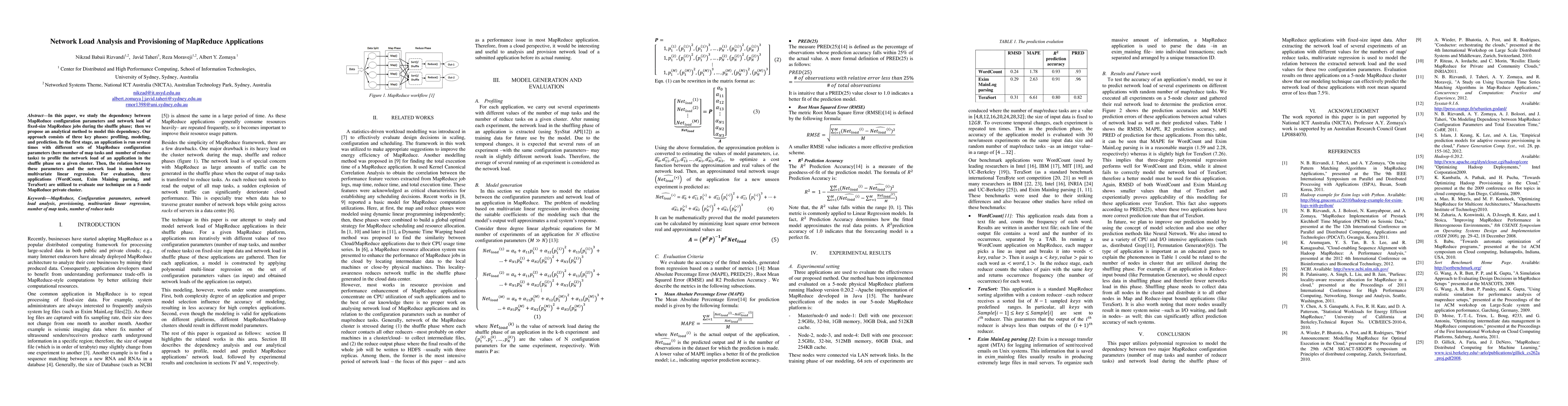 This paper proposes an analytical method to model the network load dependency on MapReduce application configuration parameters during the shuffle phase. The method involves profiling, modeling, and prediction stages, using multivariate linear regression to evaluate the network load based on parameters like the number of mappers and reducers, tested on three applications in a 4-node cluster.
