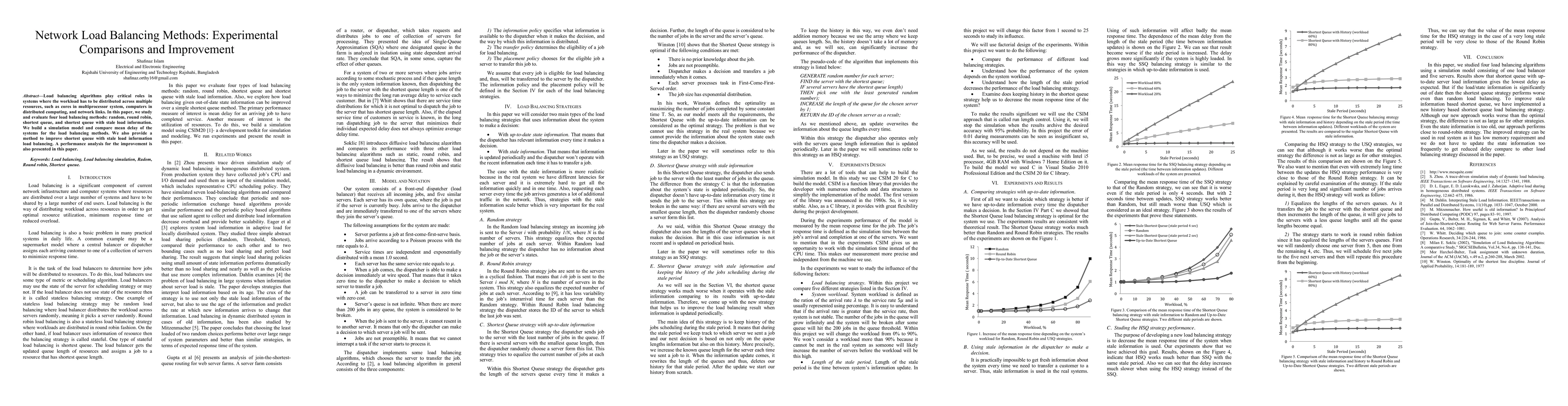 This paper evaluates four load balancing methods—random, round robin, shortest queue, and shortest queue with stale load information—using a simulation model. It proposes an improved version of the latter and presents a performance analysis of the enhancement.