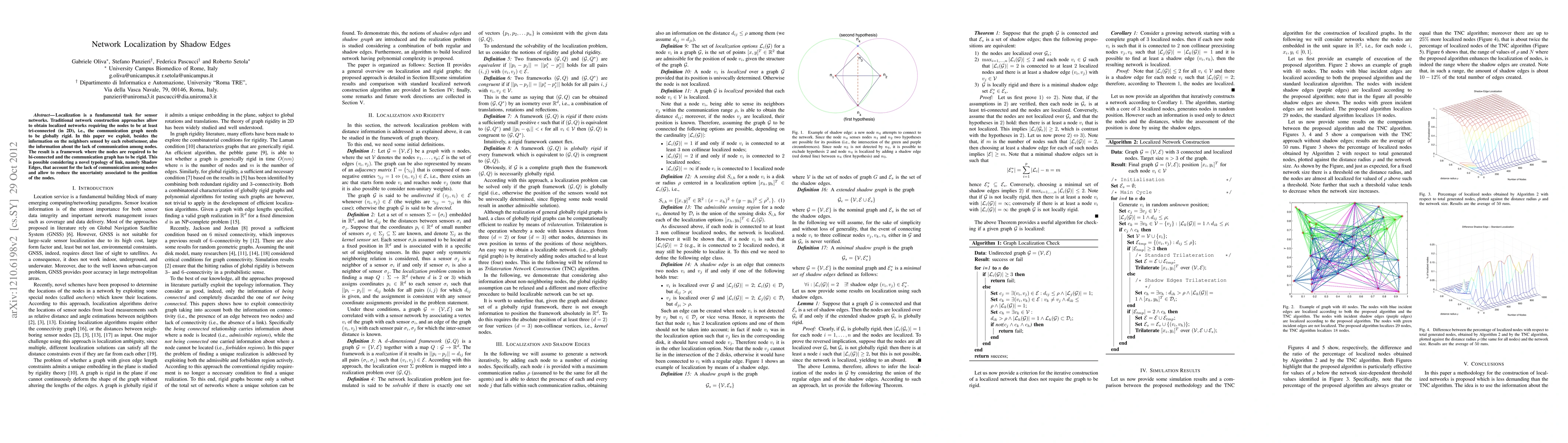 Localization is a fundamental task for sensor networks. Traditional network construction approaches allow to obtain localized networks requiring the nodes to be at least tri-connected (in 2D), i.e., the communication graph needs to be globally rigid. In this paper we exploit, besides the information on the neighbors sensed by each robot/sensor, also the information about the lack of communication among nodes. The result is a framework where the nodes are required to be bi-connected and the communication graph has to be rigid. This is possible considering a novel typology of link, namely Shadow Edges, that account for the lack of communication among nodes and allow to reduce the uncertainty associated to the position of the nodes.