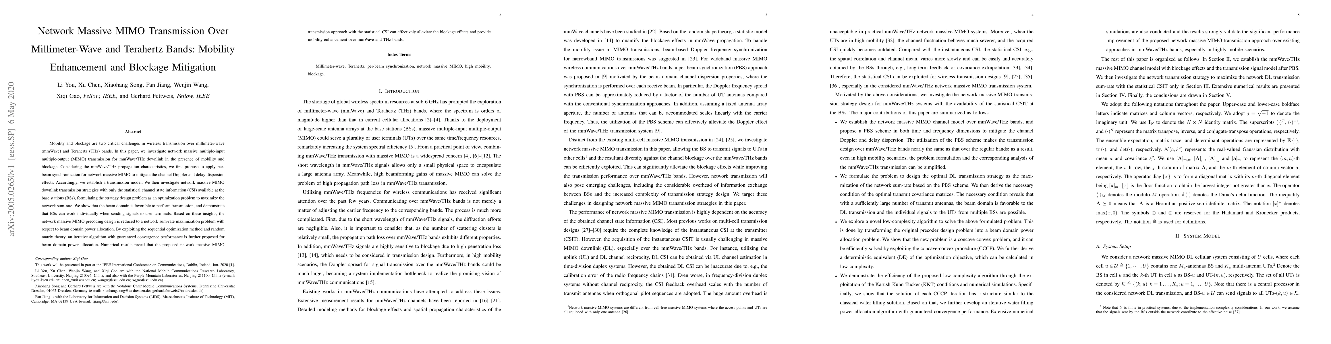 This paper explores network massive MIMO transmission strategies for mmWave/THz bands to address mobility and blockage challenges. It proposes a per-beam synchronization method to mitigate channel effects and develops an optimization-based approach for maximizing network sum-rate, demonstrating effective blockage mitigation and mobility enhancement.