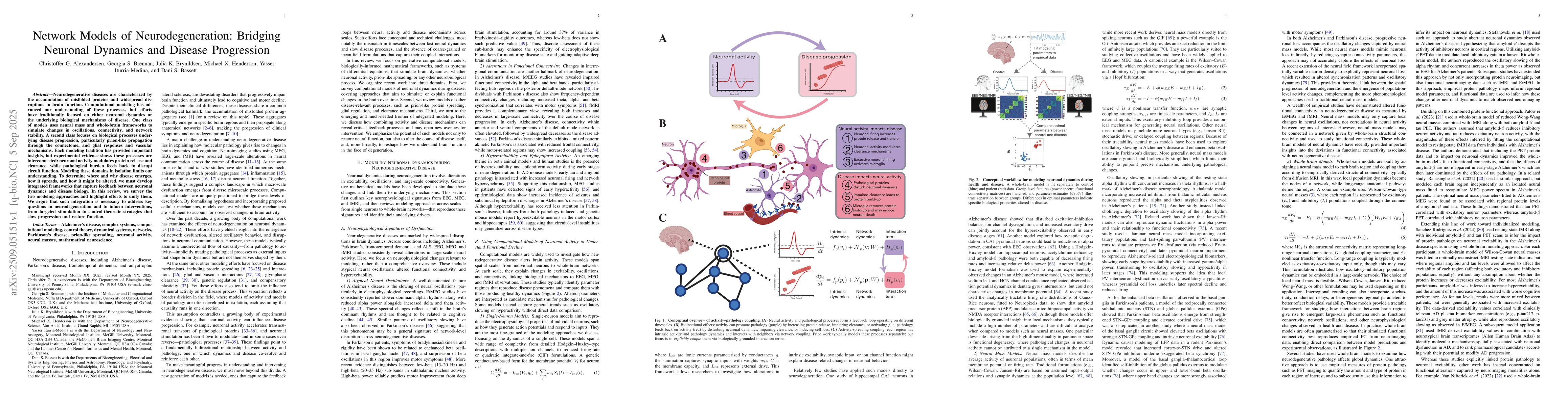 Neurodegenerative diseases are characterized by the accumulation of misfolded proteins and widespread disruptions in brain function. Computational modeling has advanced our understanding of these processes, but efforts have traditionally focused on either neuronal dynamics or the underlying biological mechanisms of disease. One class of models uses neural mass and whole-brain frameworks to simulate changes in oscillations, connectivity, and network stability. A second class focuses on biological processes underlying disease progression, particularly prion-like propagation through the connectome, and glial responses and vascular mechanisms. Each modeling tradition has provided important insights, but experimental evidence shows these processes are interconnected: neuronal activity modulates protein release and clearance, while pathological burden feeds back to disrupt circuit function. Modeling these domains in isolation limits our understanding. To determine where and why disease emerges, how it spreads, and how it might be altered, we must develop integrated frameworks that capture feedback between neuronal dynamics and disease biology. In this review, we survey the two modeling approaches and highlight efforts to unify them. We argue that such integration is necessary to address key questions in neurodegeneration and to inform interventions, from targeted stimulation to control-theoretic strategies that slow progression and restore function.
