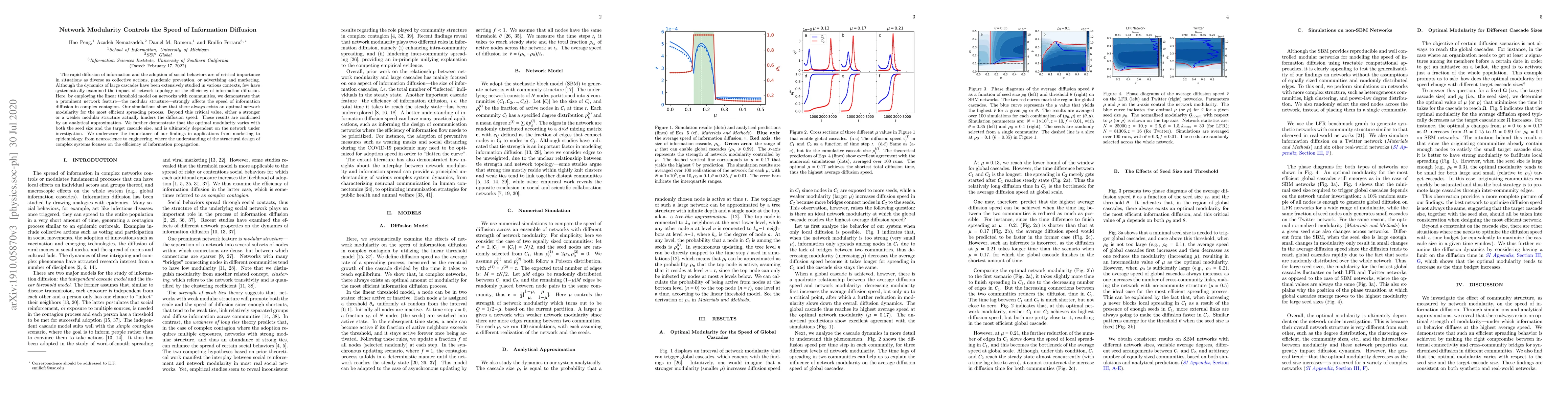 This paper investigates how network modularity influences the speed of information diffusion in complex contagions, demonstrating that an optimal modularity level maximizes diffusion efficiency. The study finds that beyond this optimal level, either stronger or weaker modularity can hinder diffusion speed, with results confirmed through simulations and analytical approximations.