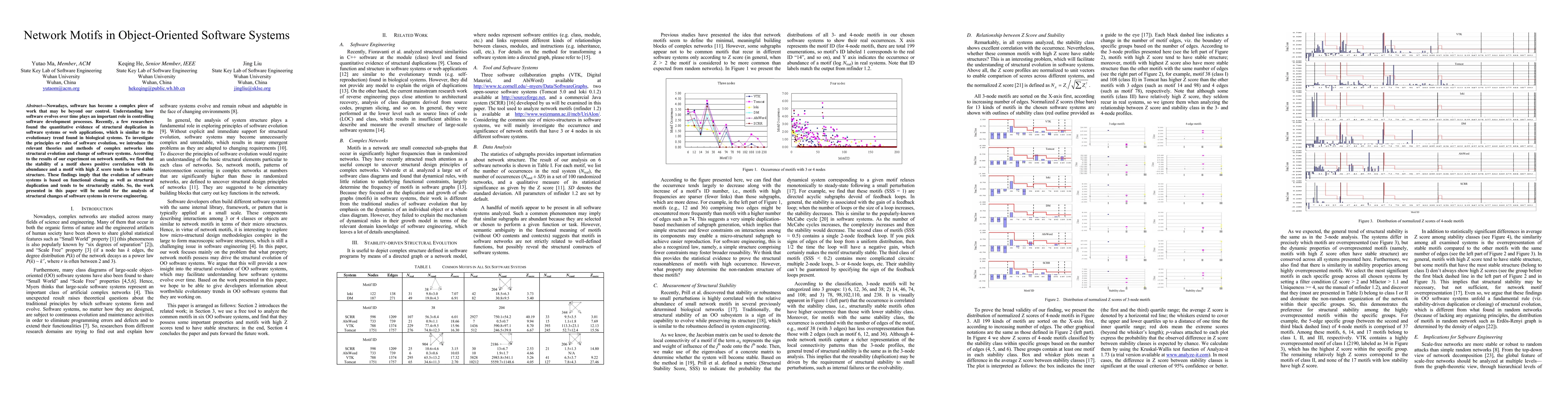 Nowadays, software has become a complex piece of work that may be beyond our control. Understanding how software evolves over time plays an important role in controlling software development processes. Recently, a few researchers found the quantitative evidence of structural duplication in software systems or web applications, which is similar to the evolutionary trend found in biological systems. To investigate the principles or rules of software evolution, we introduce the relevant theories and methods of complex networks into structural evolution and change of software systems. According to the results of our experiment on network motifs, we find that the stability of a motif shows positive correlation with its abundance and a motif with high Z score tends to have stable structure. These findings imply that the evolution of software systems is based on functional cloning as well as structural duplication and tends to be structurally stable. So, the work presented in this paper will be useful for the analysis of structural changes of software systems in reverse engineering.
