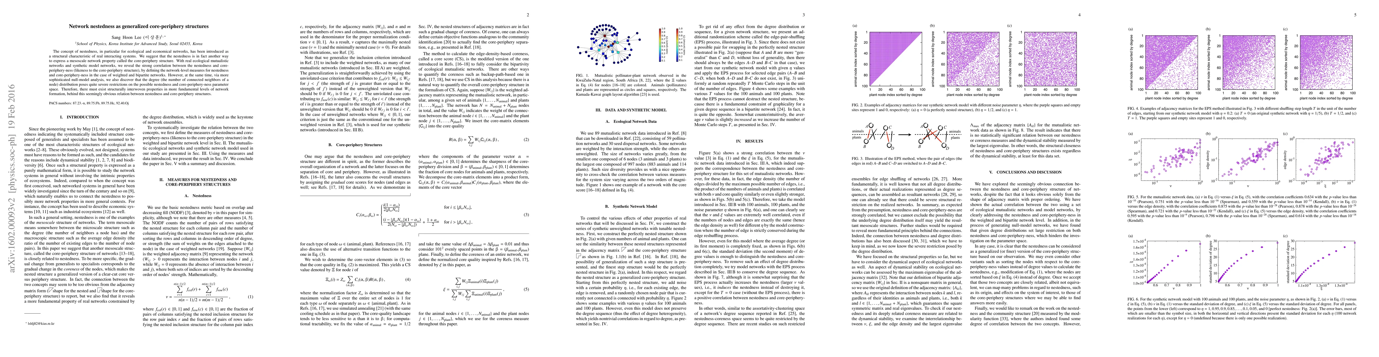 The paper introduces network-level measures for nestedness and core-periphery-ness in weighted and bipartite networks, and develops a synthetic network model to study the effects of noise and degree distribution on nestedness.