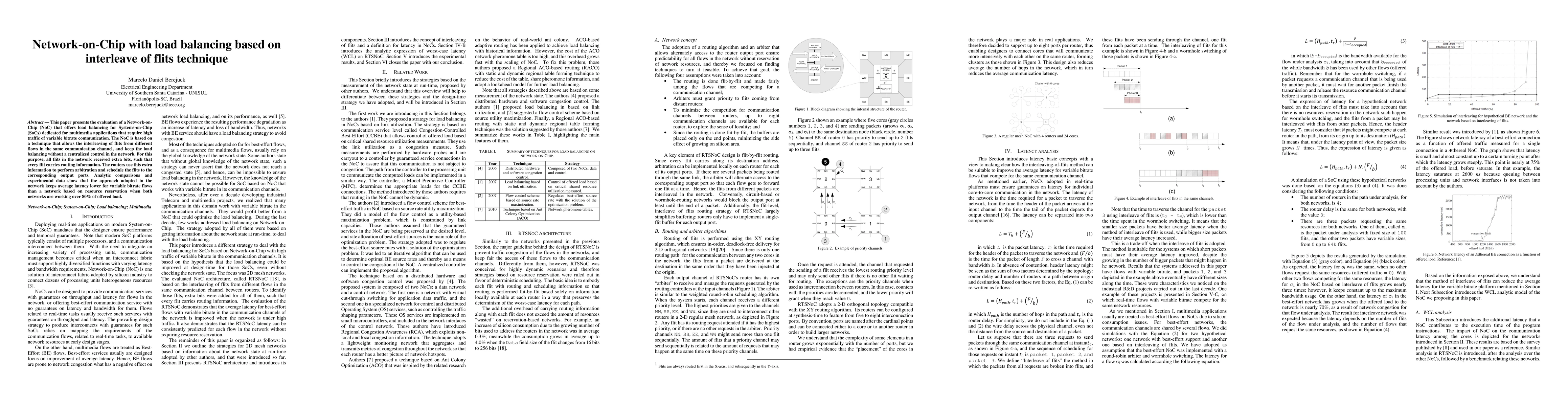 This paper evaluates a Network-on-Chip (NoC) that uses interleaved flits for load balancing without centralized control, achieving lower average latency for variable bitrate flows compared to a resource reservation-based network under high load conditions. The NoC employs extra routing information in each flit to manage arbitration and scheduling.