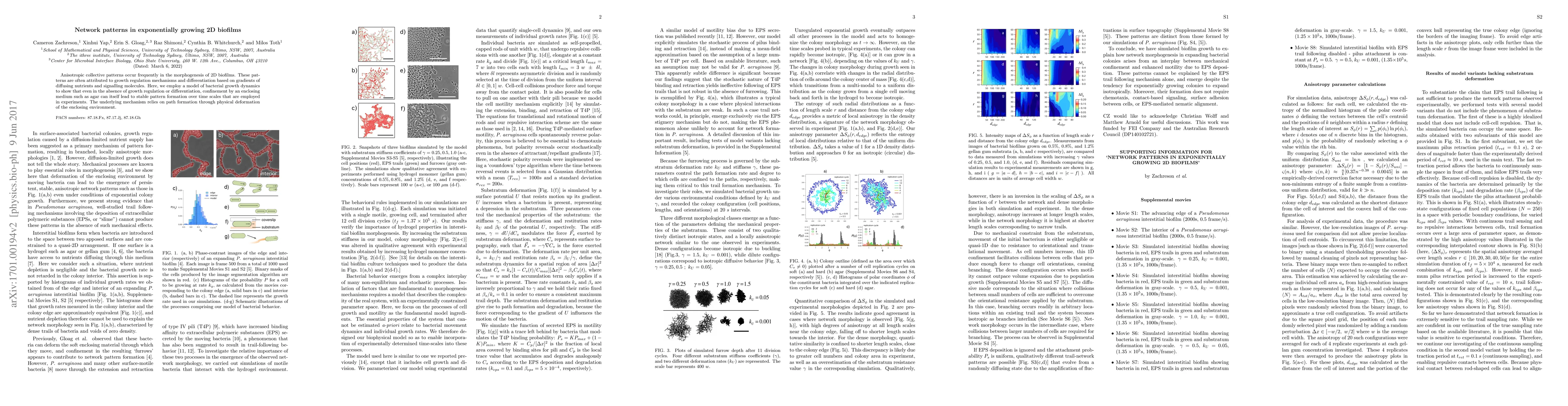 Anisotropic collective patterns occur frequently in the morphogenesis of 2D biofilms. These patterns are often attributed to growth regulation mechanisms and differentiation based on gradients of diffusing nutrients and signalling molecules. Here, we employ a model of bacterial growth dynamics to show that even in the absence of growth regulation or differentiation, confinement by an enclosing medium such as agar can itself lead to stable pattern formation over time scales that are employed in experiments. The underlying mechanism relies on path formation through physical deformation of the enclosing environment.