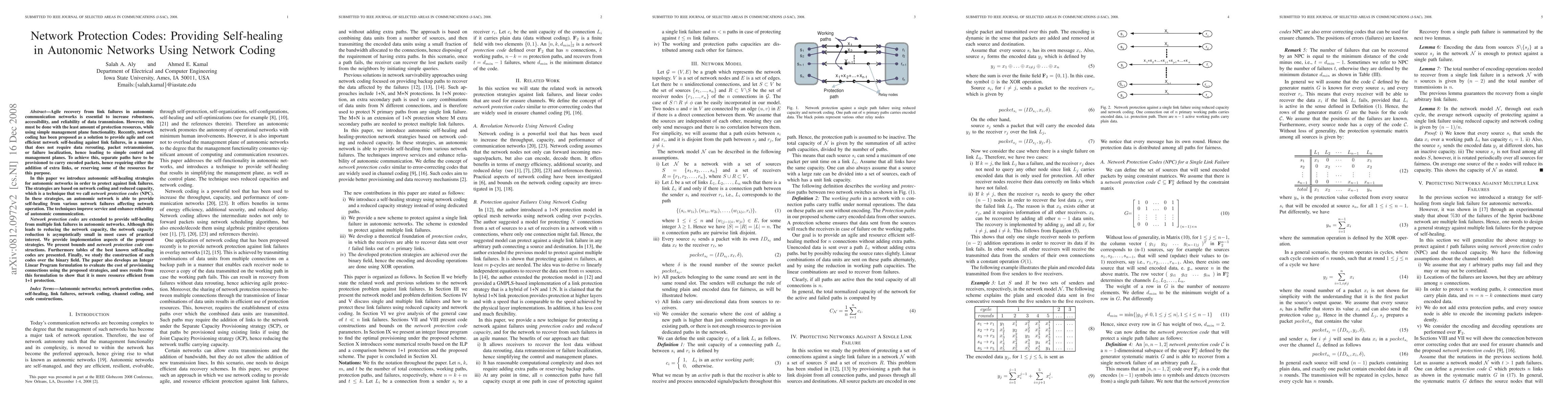 This paper introduces network protection codes (NPC) based on network coding to enable self-healing in autonomic networks, enhancing reliability and service without requiring data rerouting or packet retransmission. The proposed strategies are cost-efficient and simplify management, while also providing solutions for multiple link failures.