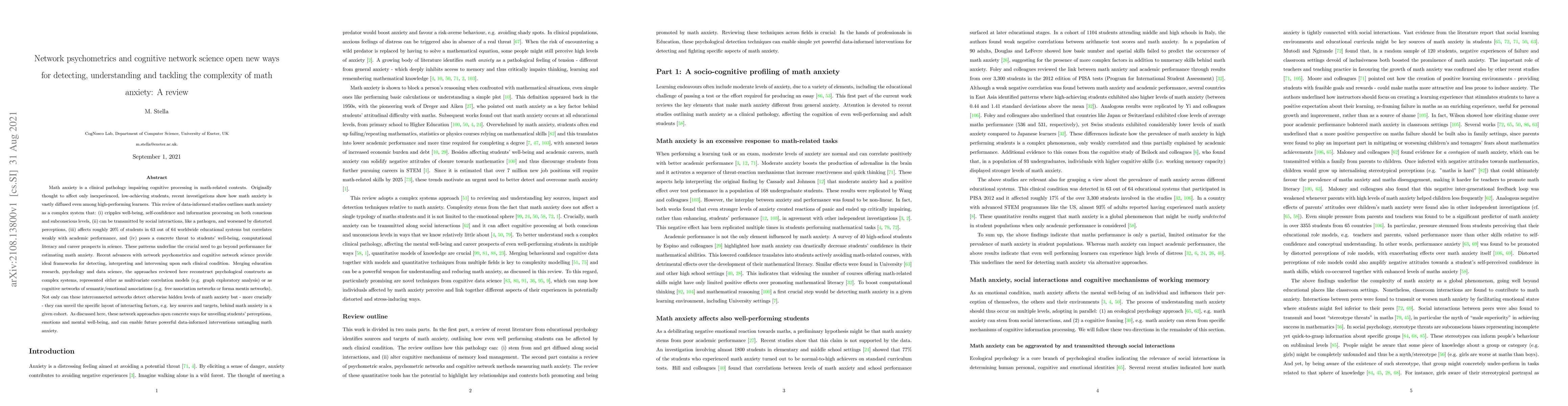 This review explores how network psychometrics and cognitive network science can detect, understand, and address the complexity of math anxiety, revealing its pervasive impact on students' well-being and cognitive processing. These advanced methods offer insights into the underlying factors and interactions of math anxiety, paving the way for effective, data-driven interventions.