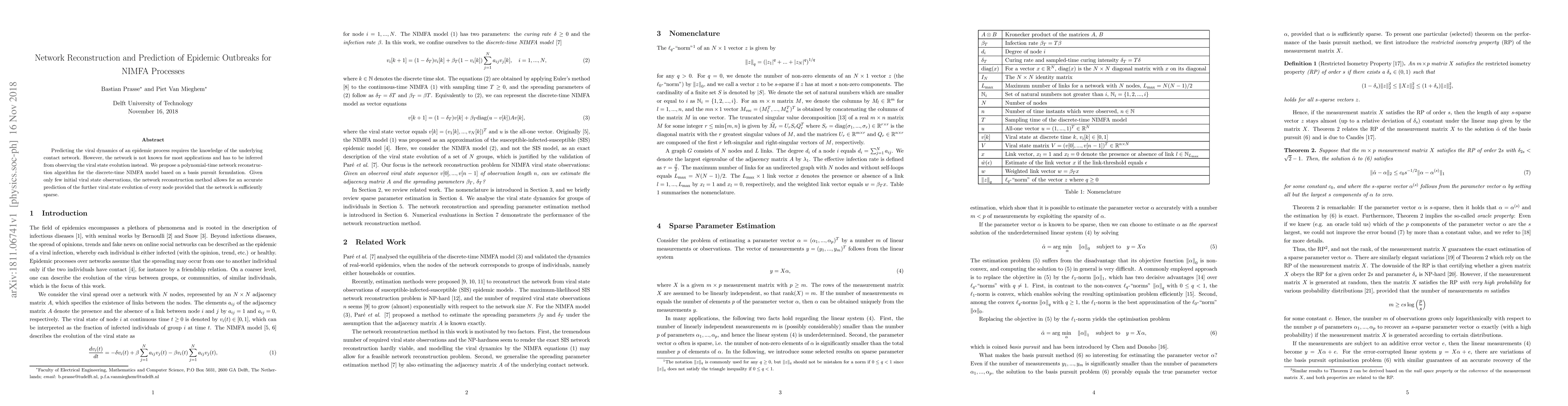 This paper proposes a polynomial-time algorithm for reconstructing contact networks in epidemic models using the NIMFA framework. The method infers the network from initial viral state observations and enables accurate predictions of future viral dynamics, assuming the network is sparse.