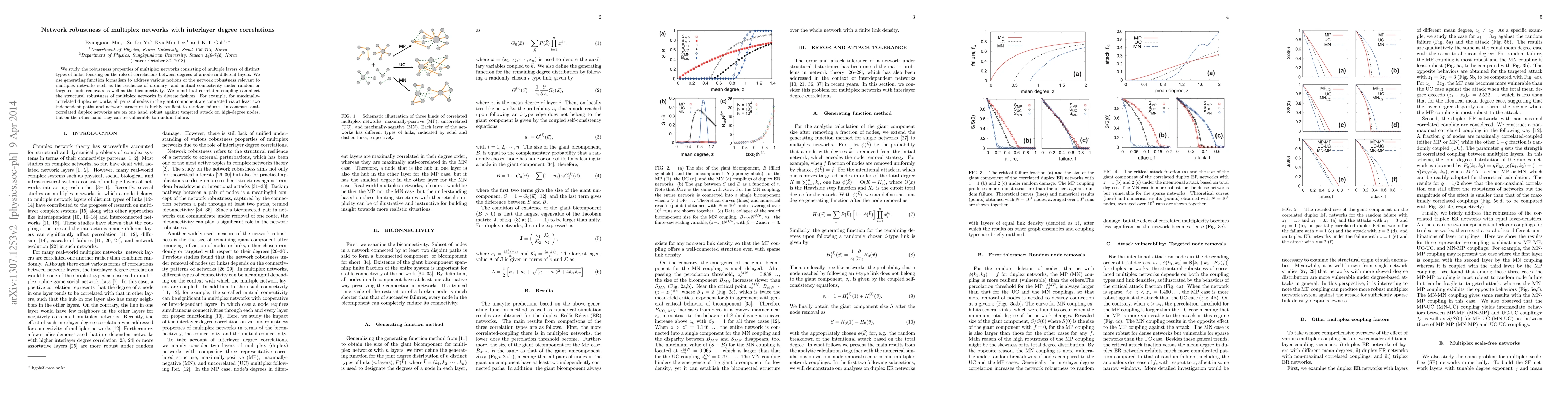 This paper investigates the robustness of multiplex networks with interlayer degree correlations using generating function formalism. It finds that correlated coupling can significantly enhance structural robustness, while anti-correlated networks show resilience to targeted attacks but vulnerability to random failures.