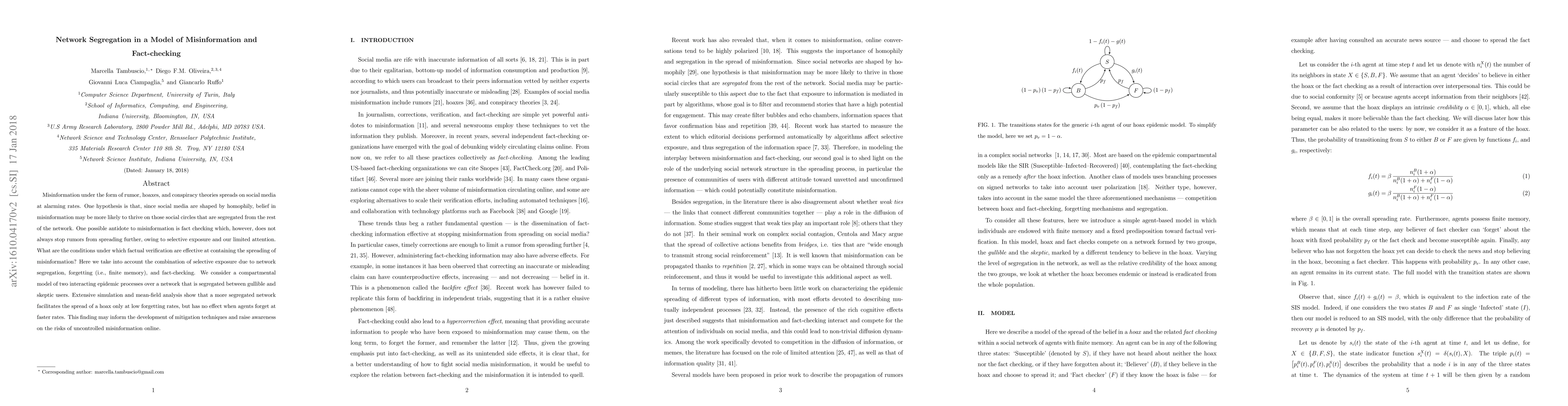 This paper explores how misinformation spreads in segregated social networks and the impact of fact-checking. It finds that while segregated networks facilitate hoax spread at low forgetting rates, faster forgetting mitigates this effect, suggesting that attention and memory dynamics play crucial roles in controlling misinformation.