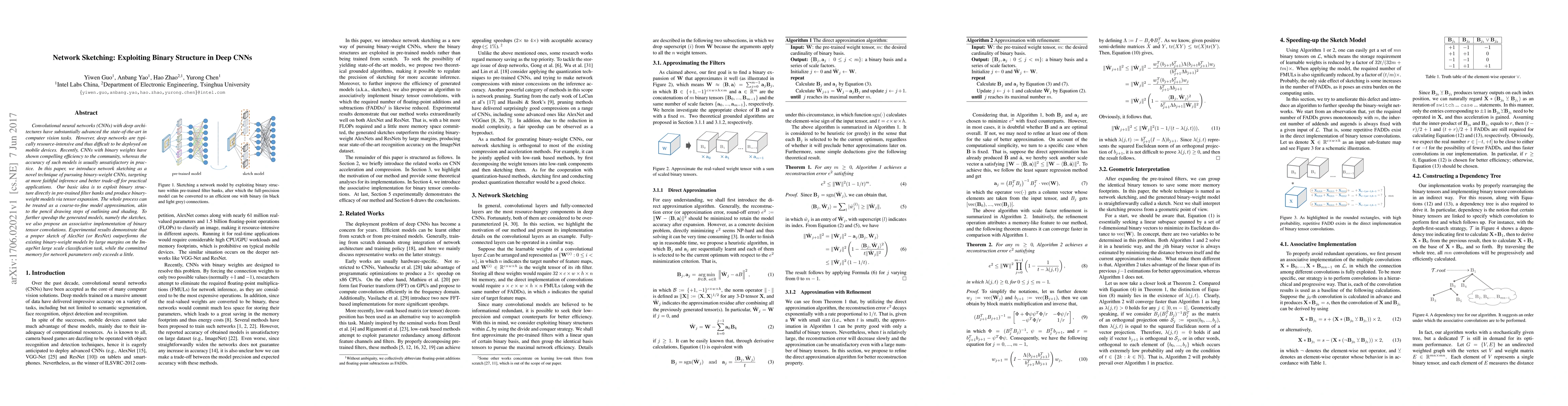 Researchers introduce network sketching, a technique to create efficient binary-weight CNNs with improved accuracy, targeting mobile device deployment. Their method produces models that outperform existing binary-weight models on image classification tasks.