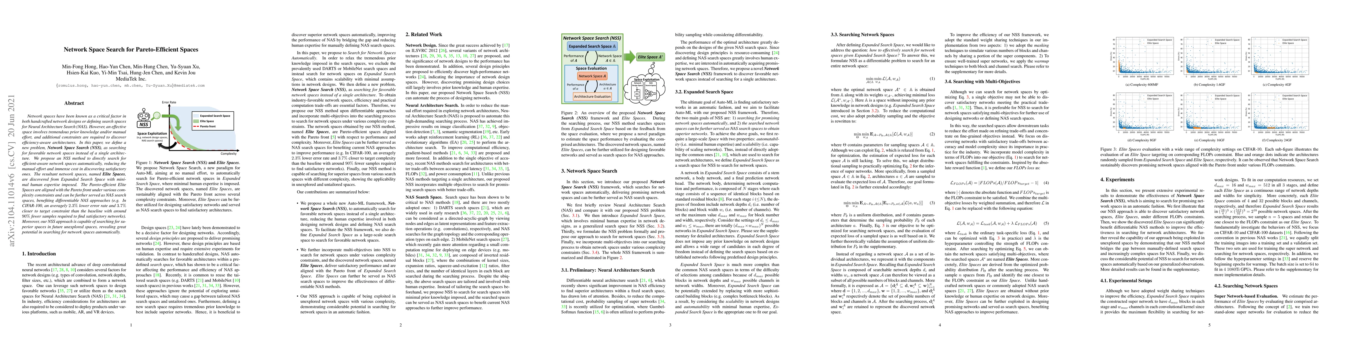 This paper introduces Network Space Search (NSS) to automatically find efficient network spaces, reducing manual effort and cost. The proposed NSS method discovers Pareto-efficient Elite Spaces that outperform baselines in tasks like CIFAR-100, requiring fewer samples and achieving better accuracy and constraint adherence.