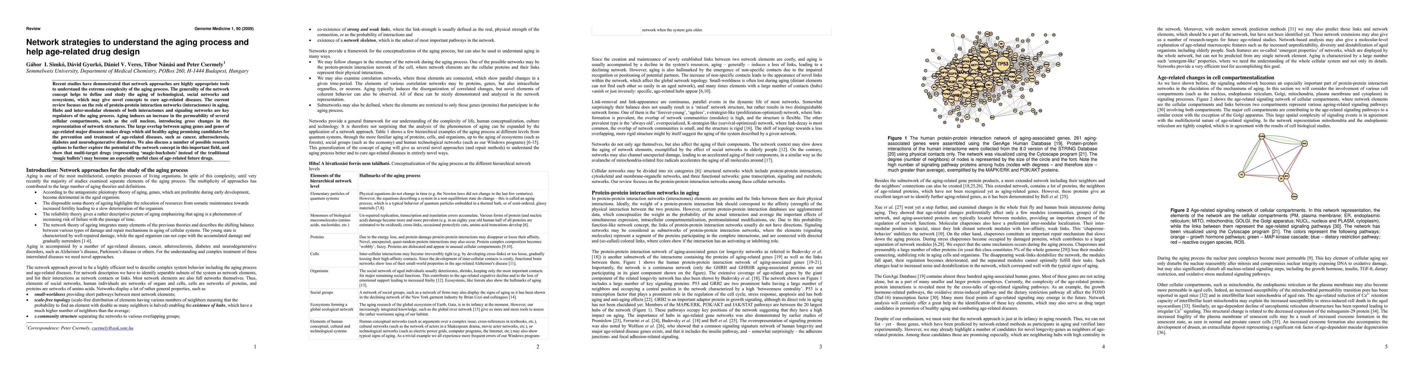 This paper explores how network strategies, particularly protein-protein interaction networks, can provide insights into the aging process and inform the design of drugs for age-related diseases. It highlights the potential of multi-target drugs as effective treatments for conditions like cancer and neurodegenerative disorders.