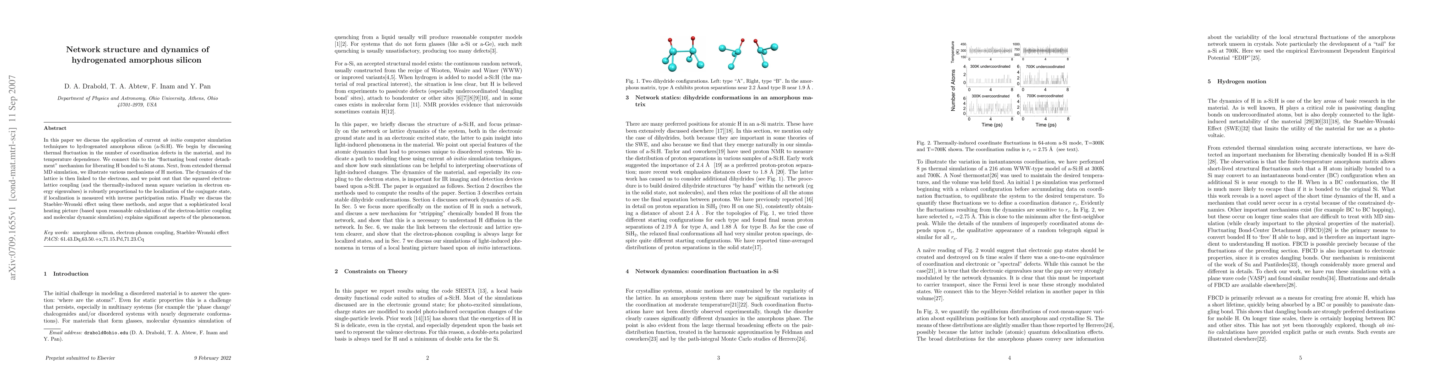 In this paper we discuss the application of current it ab initio computer simulation techniques to hydrogenated amorphous silicon (a-Si:H). We begin by discussing thermal fluctuation in the number of coordination defects in the material, and its temperature dependence. We connect this to the ``fluctuating bond center detachment" mechanism for liberating H bonded to Si atoms. Next, from extended thermal MD simulation, we illustrate various mechanisms of H motion. The dynamics of the lattice is then linked to the electrons, and we point out that the squared electron-lattice coupling (and the thermally-induced mean square variation in electron energy eigenvalues) is robustly proportional to the localization of the conjugate state, if localization is measured with inverse participation ratio. Finally we discuss the Staebler-Wronski effect using these methods, and argue that a sophisticated local heating picture (based upon reasonable calculations of the electron-lattice coupling and molecular dynamic simulation) explains significant aspects of the phenomenon.