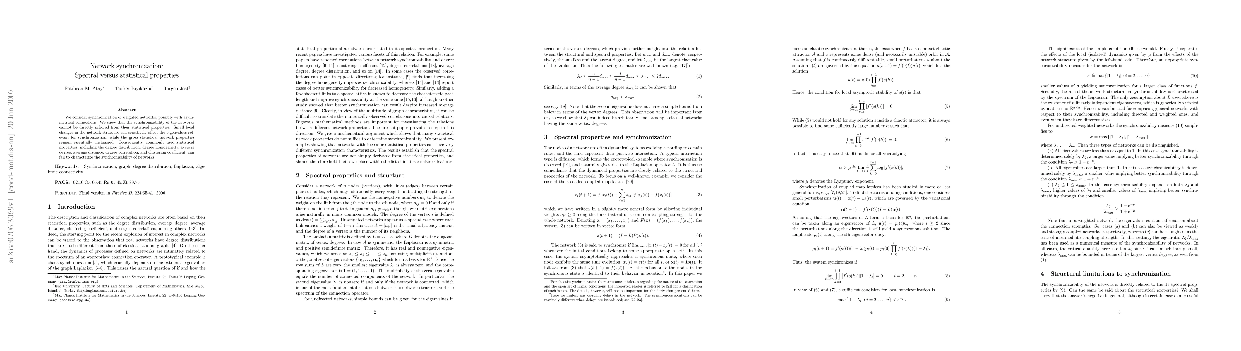This paper investigates the synchronization of weighted networks, demonstrating that synchronizability cannot be inferred from statistical properties alone. Small structural changes can significantly alter synchronization-relevant eigenvalues, while major statistical properties remain unaffected, highlighting the limitations of using these properties to characterize network synchronizability.